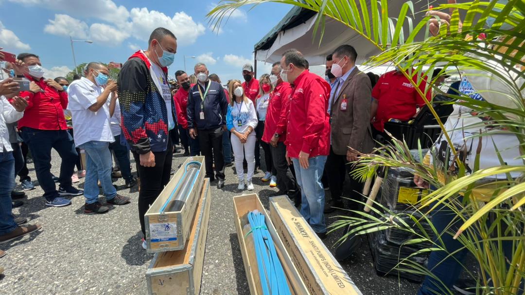 Asimismo, informó que se realizó la dotación de 2 motores y 2 bombas de 75 Hp, 2 motores y 2 bombas de 60 Hp, 1 motor y 1 bomba de 40 Hp, 700 metros de cable, palas, picos, 500 kg de electrodos, 12 cajas de juegos de machuelos y tarrajas y 10 cajas de herramientas para fortalecer la operatividad del Pueblo Trabajador de Hidroportuguesa.