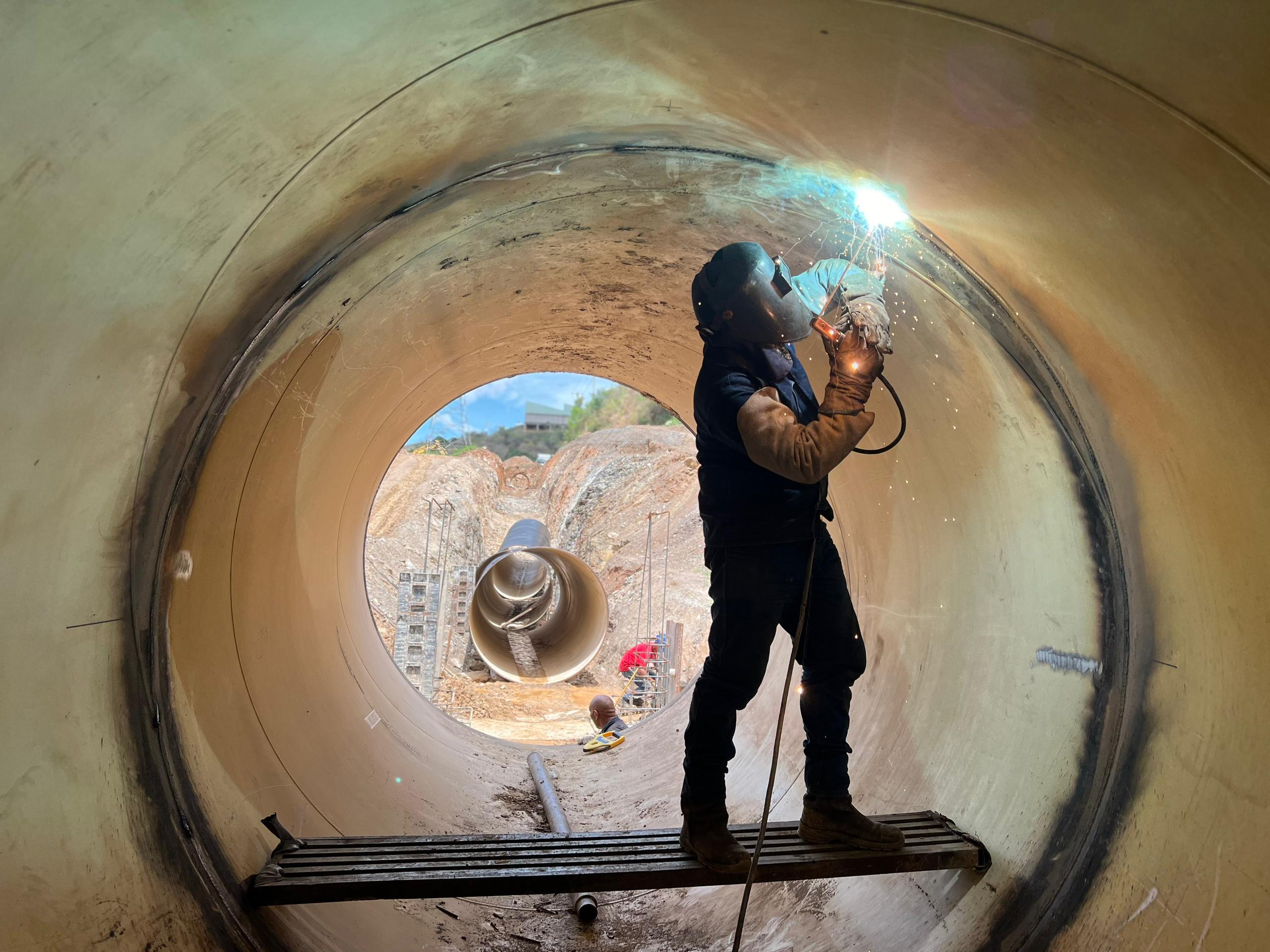 (Prensa MinAguas 06-06-2024).- Como parte de los trabajos de rehabilitación integral que se llevan a cabo en la aducción El Encantado, inició el proceso de soldadura en la tubería de 100 pulgadas, que se abastece del sistema Tuy II, para atender a más de 3 millones 500 mil habitantes de Caracas y Miranda.