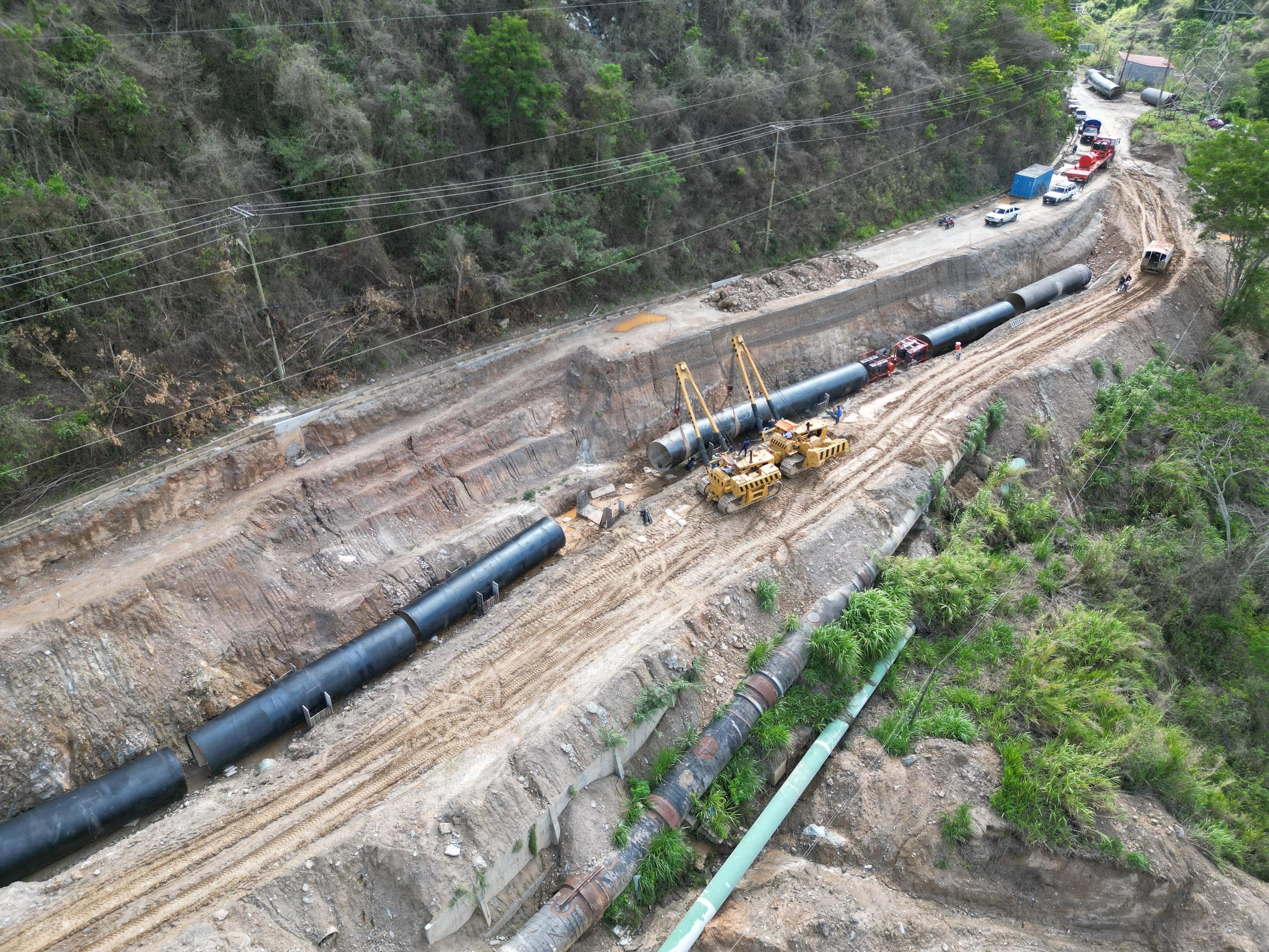 Este sistema ubicado en zona montañosa ha requerido maquinaria pesada como retroexcavadora, equipos de soldadura, entre otros implementos, ya que esta obra cuenta con un diseño de ingeniería único para protegerla y asegurar su soporte y estabilidad.