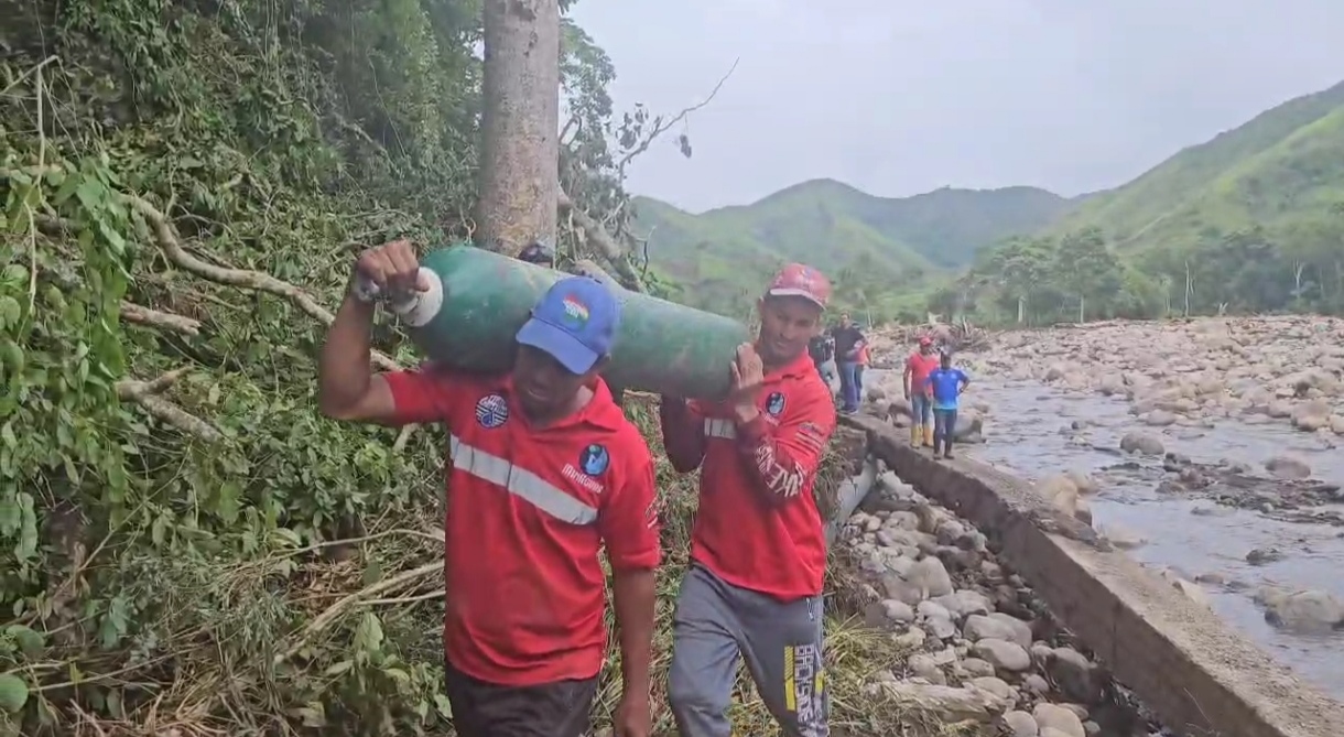 28 camiones supercisternas y activación de cuatro pozos suministran el vital líquido a la población de Cumanacoa afectada por la crecida del río Manzanares.