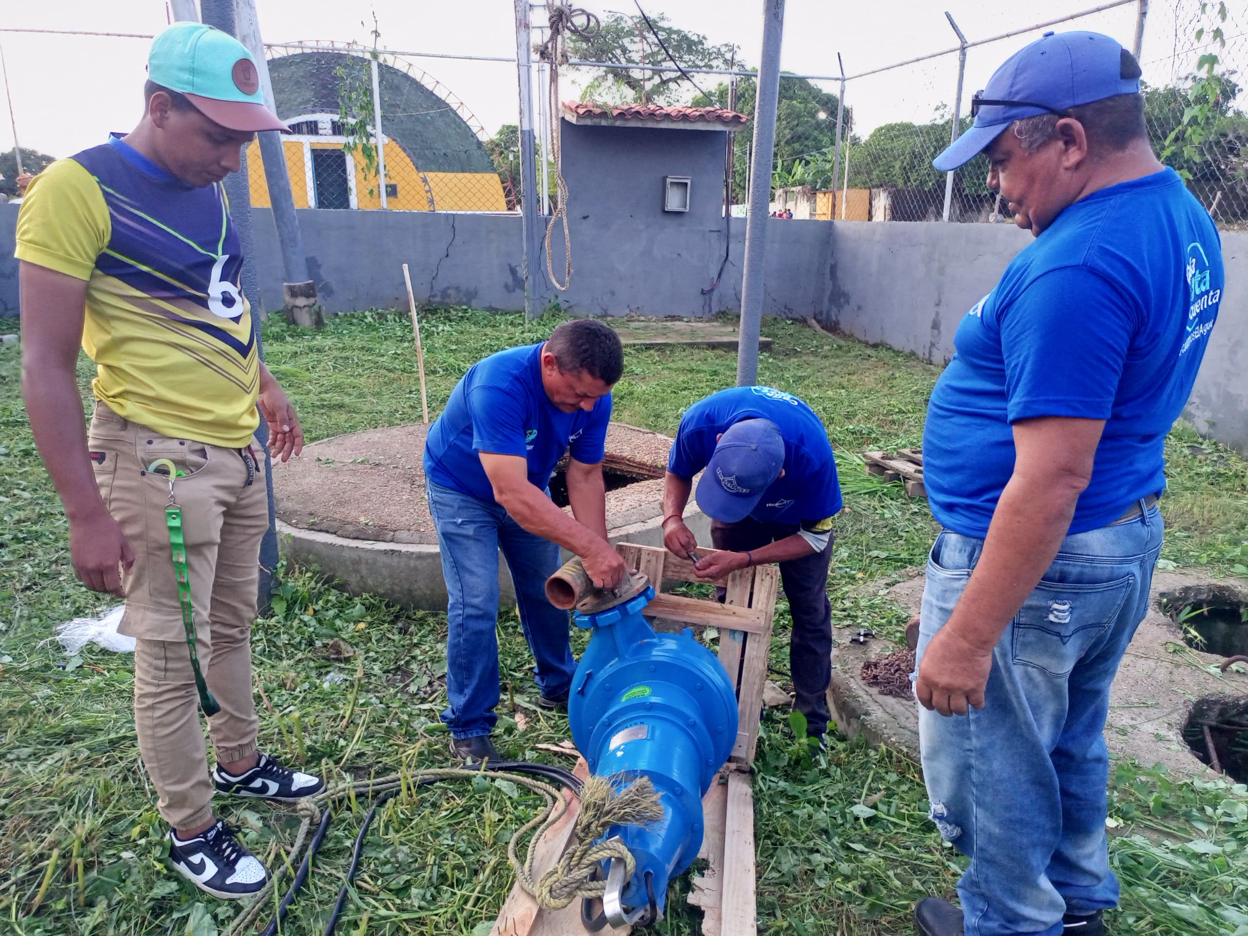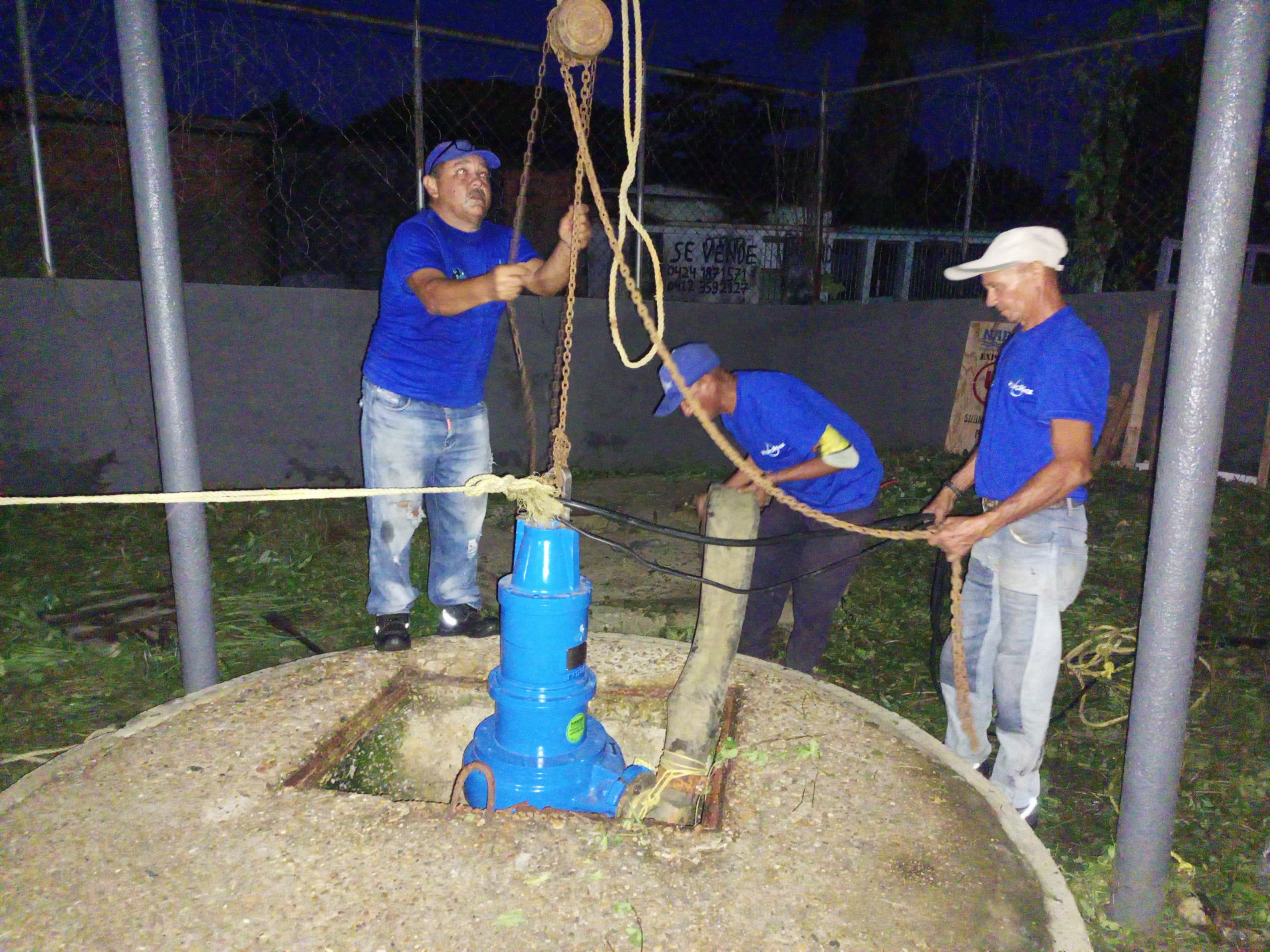 En el lugar se hicieron presentes, las cuadrillas de redes, mantenimiento y electromecánica, para realizar la instalación de un motor y bomba sumergible de 15 Hp, con una capacidad aproximada de 55 litros por segundo de tratamiento. De igual forma, se ejecutó la respectiva adecuación del tablero de fuerza y control, con el objetivo de garantizar el correcto funcionamiento de los equipos.