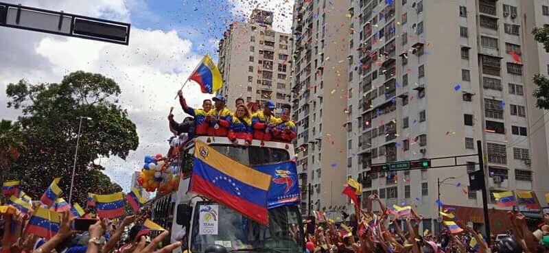 Prensa MinAguas (10-08-2021).– El Pueblo Trabajador del Ministerio del Poder Popular de Atención de las Aguas (MinAguas) se trasladó a la avenida Sucre de Caracas para recibir a los atletas que representaron dignamente a Venezuela en los Juegos Olímpicos Tokio 2020+1, cosechando importantes logros para la Patria.