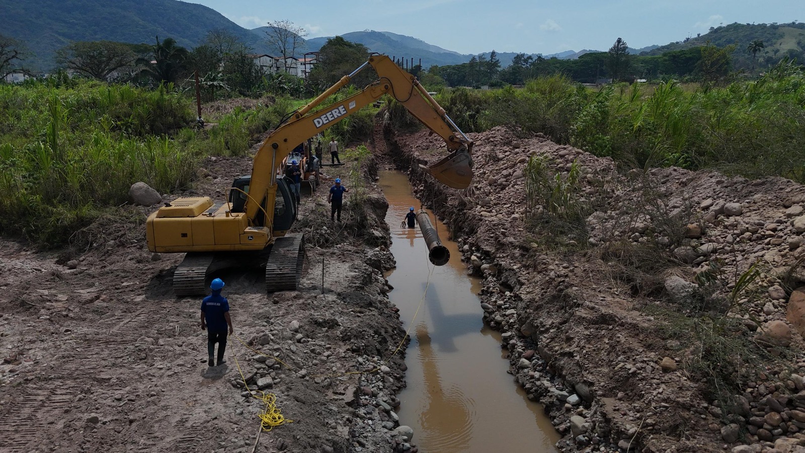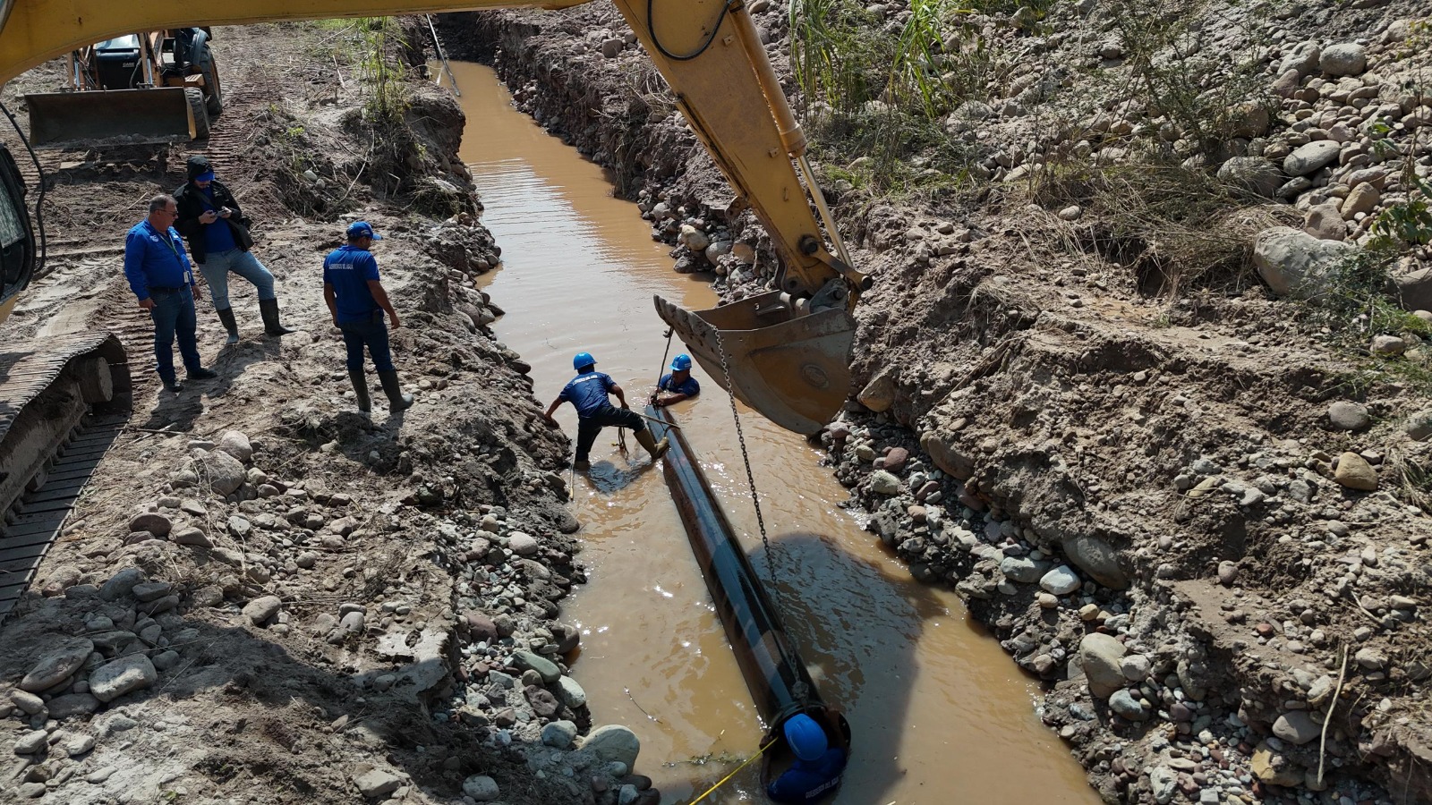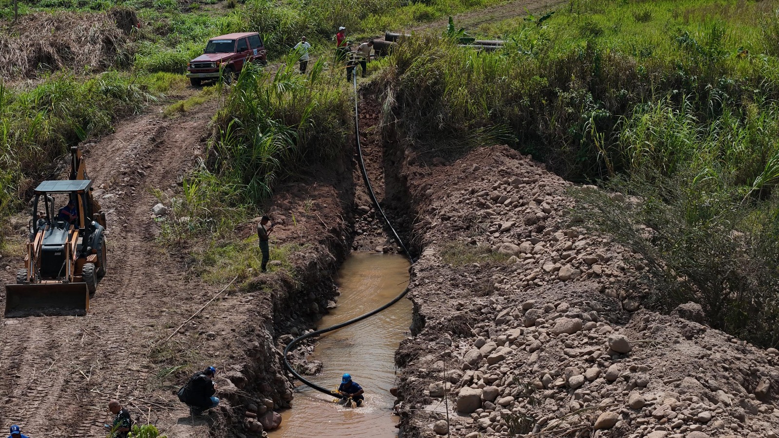 La labor se centra en la colocación de tubería de (PEAD) de 4 pulgadas, adicionalmente, se instalaron 200 metros de tubería de hierro negro de 16 pulgadas en el cruce de la quebrada Aza. Esta estructura tiene una función vital al proteger la tubería de menor diámetro de posibles daños por las crecidas del caudal, asegurando así la continuidad del servicio.