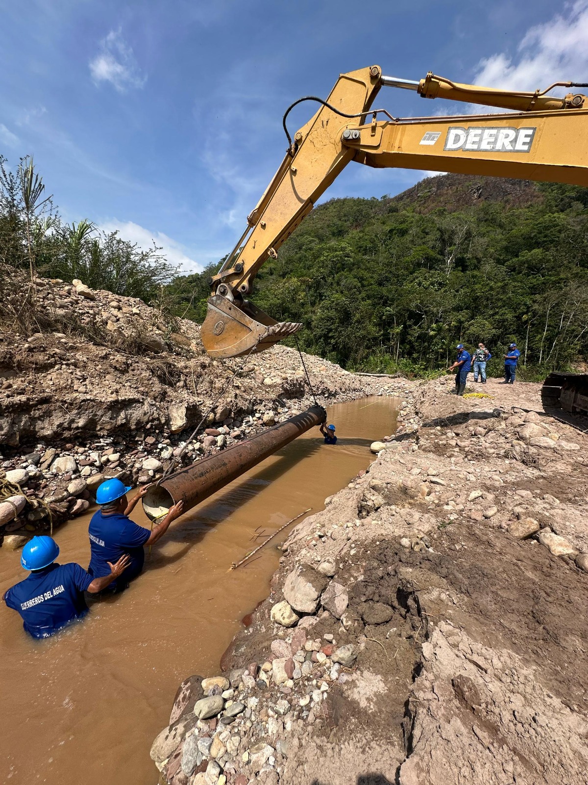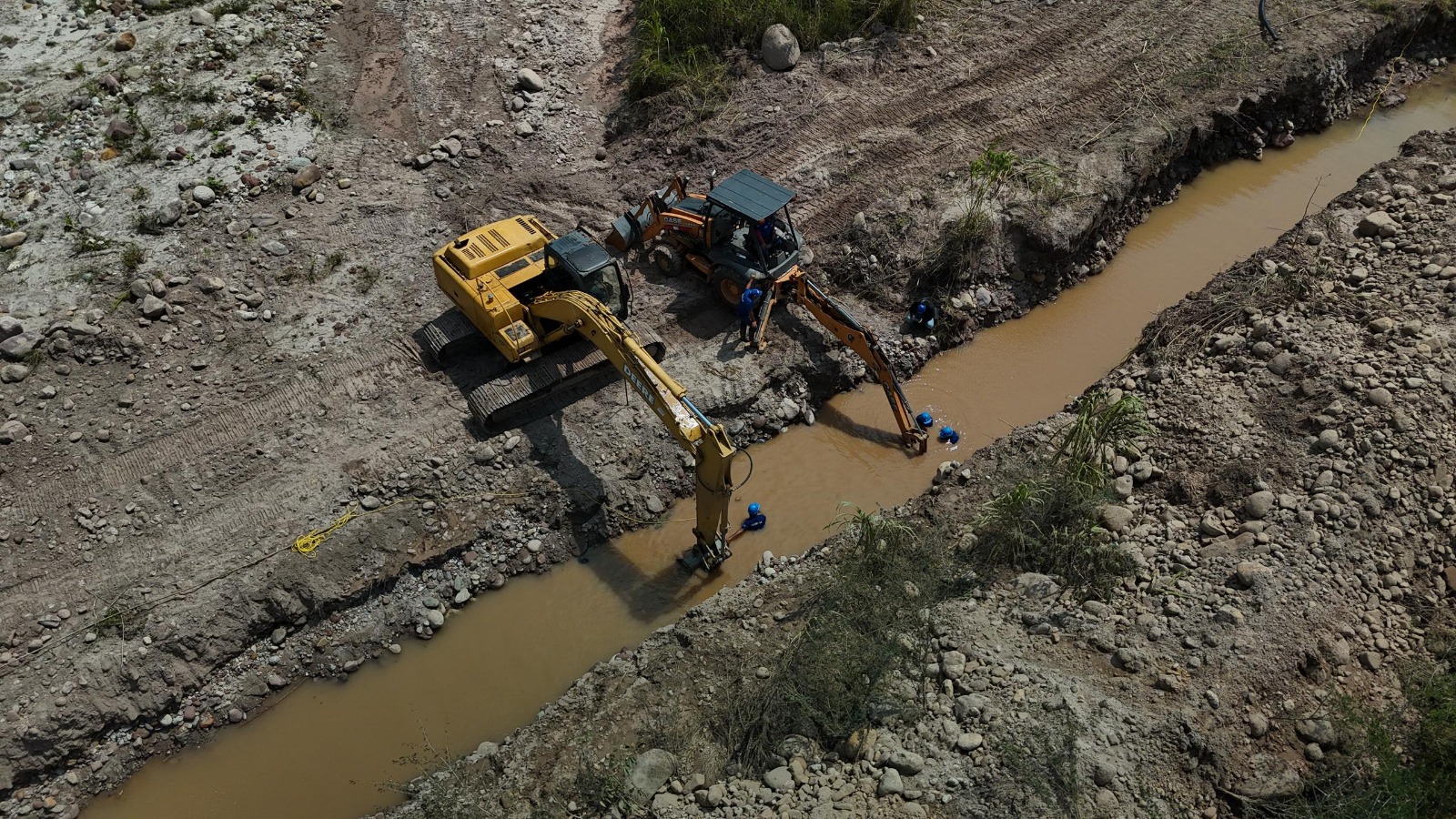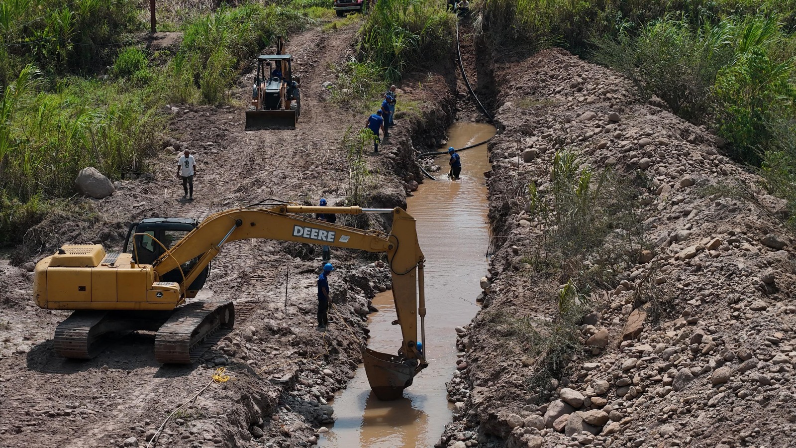 Para llevar a cabo el proyecto, una cuadrilla compuesta por más de 20 trabajadores, realiza trabajos de excavación con el uso de una máquina tipo Jumbo y retroexcavadora, en el afluente hídrico.