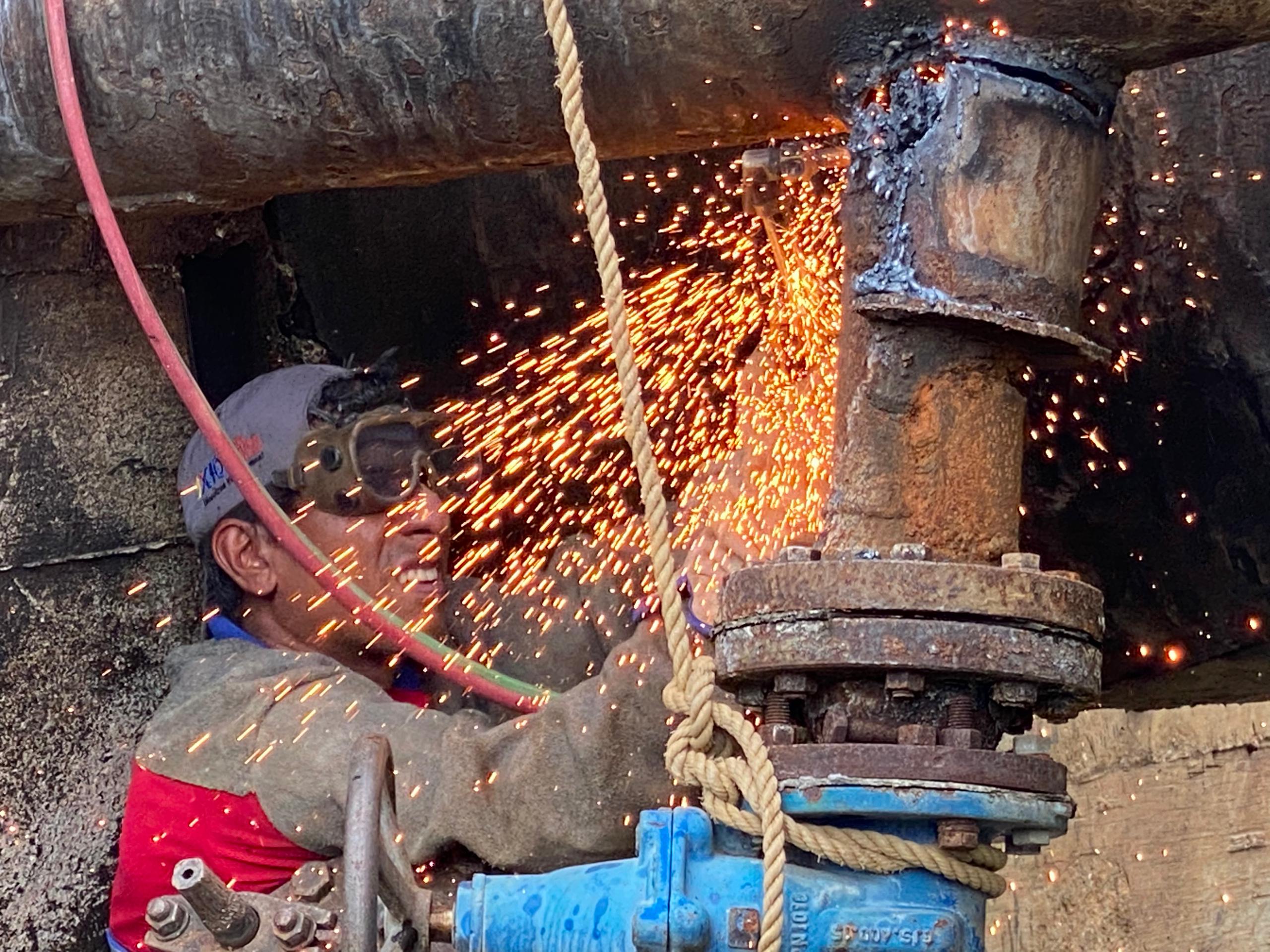 187 hombres y mujeres de la Fuerza Trabajadora del Agua, se desplegaron en zonas montañosas y de difícil acceso para reparar en menos de 24 horas averías en tuberías de diferentes pulgadas de diámetro.