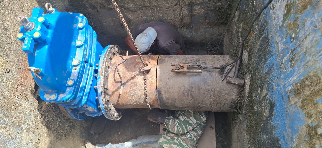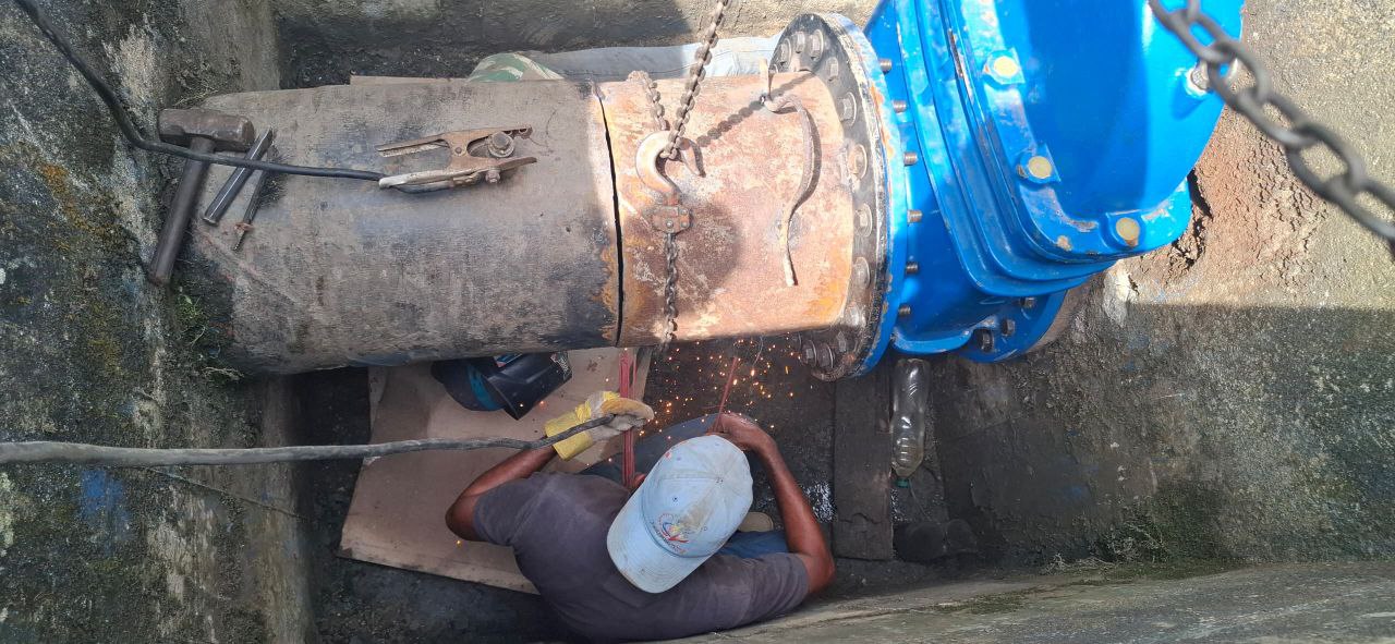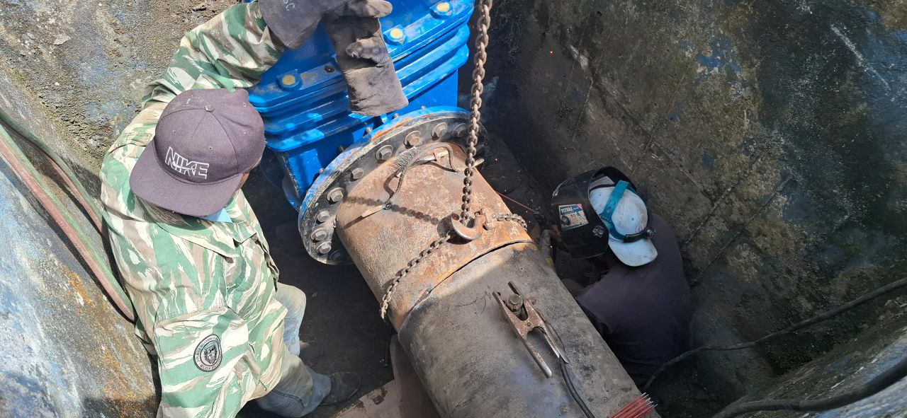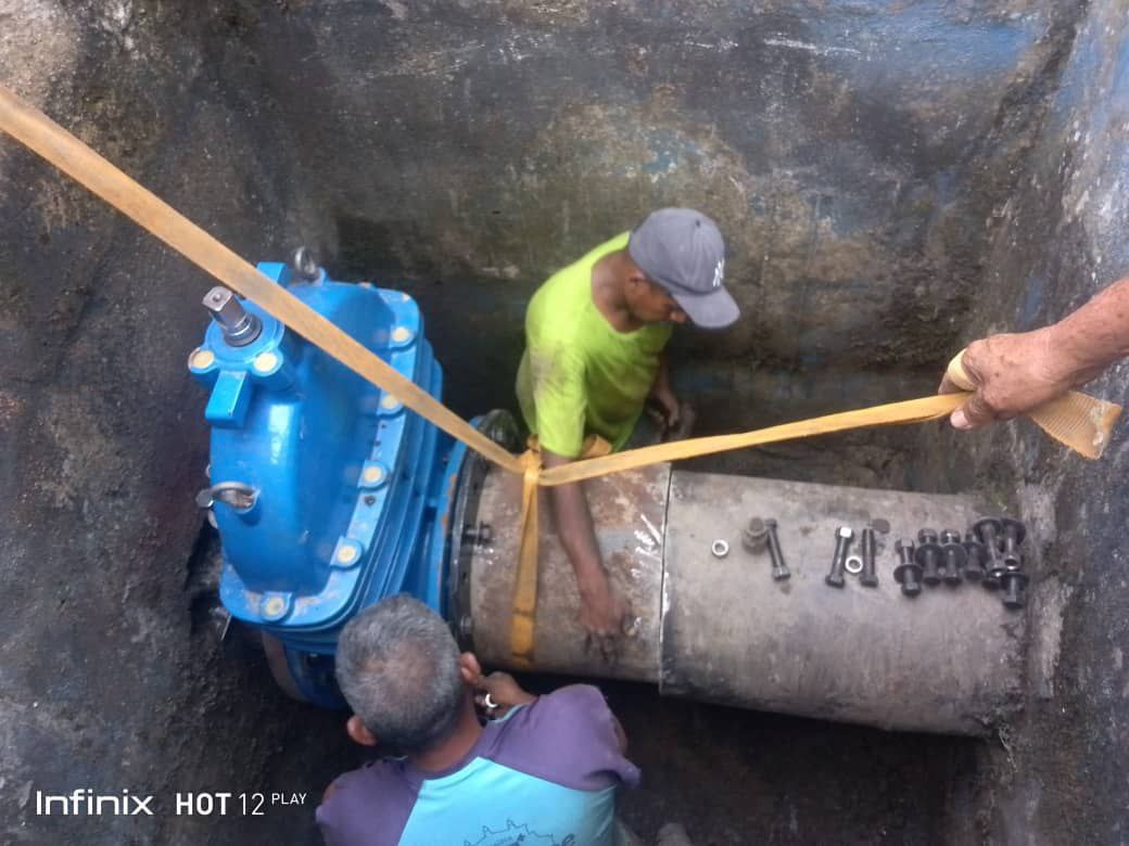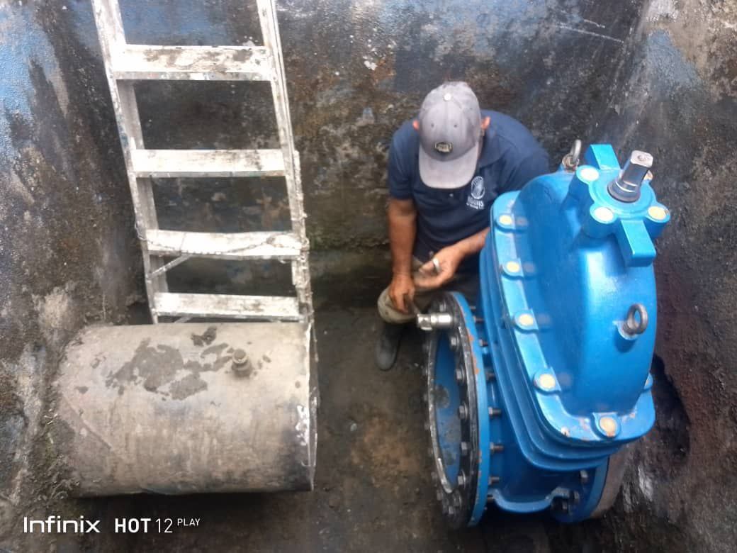 Las labores consistieron en el desmontaje, corte de tubería de acero de 20 pulgadas, trabajo de soldadura y montaje de la válvula, la cuál optimizó la distribución de agua potable a 4.500 familias de 15 comunidades de la jurisdicción.