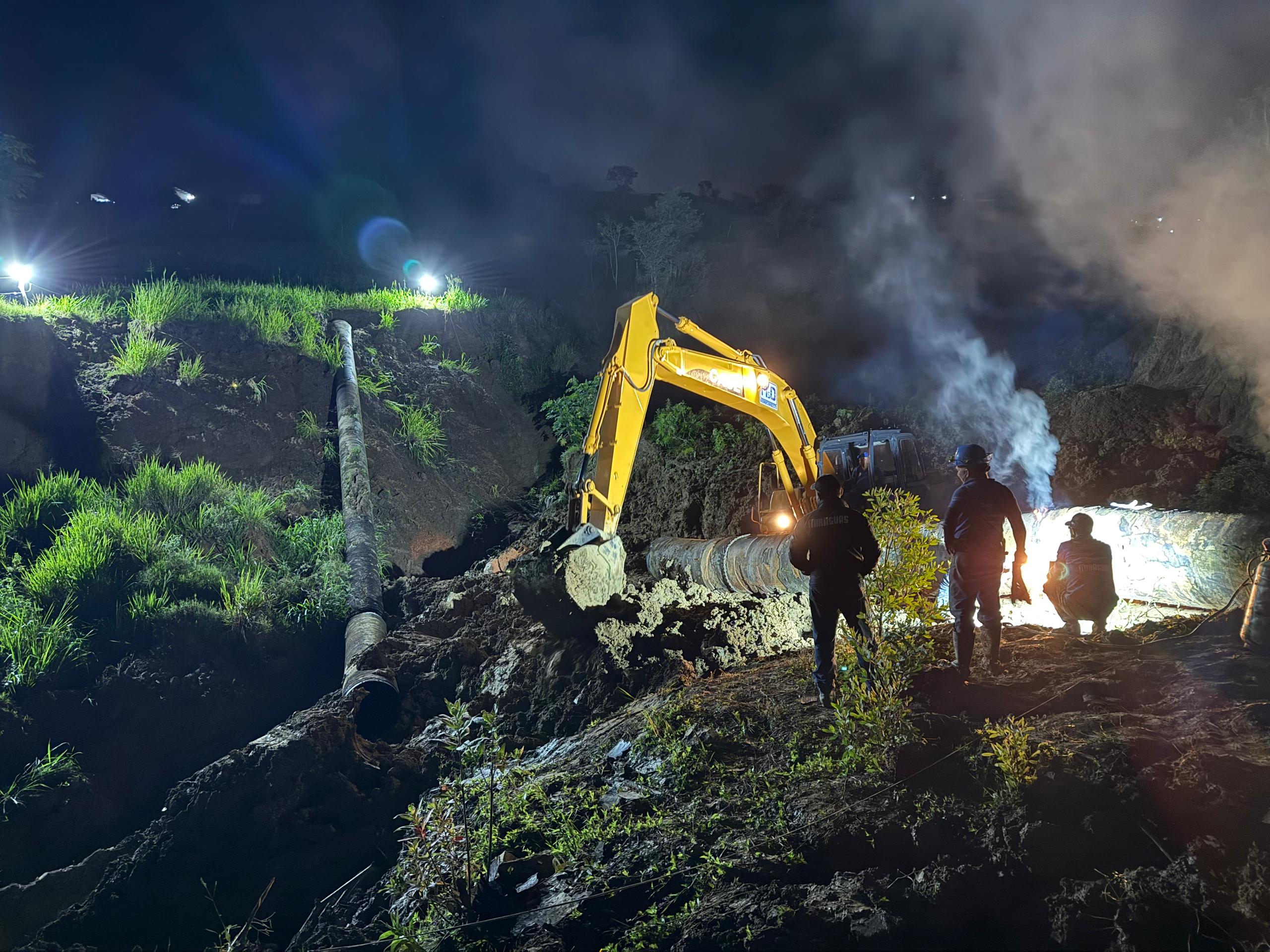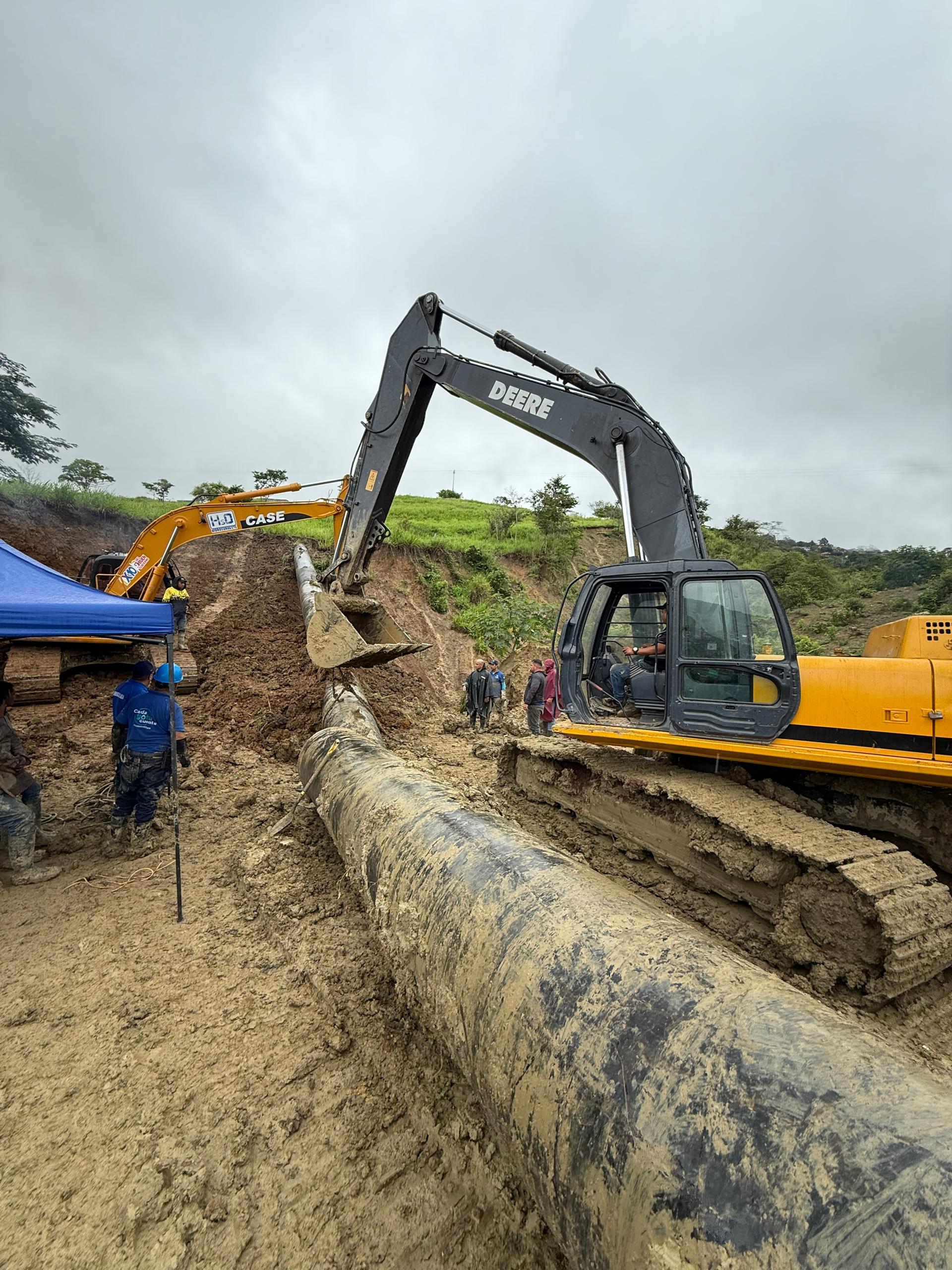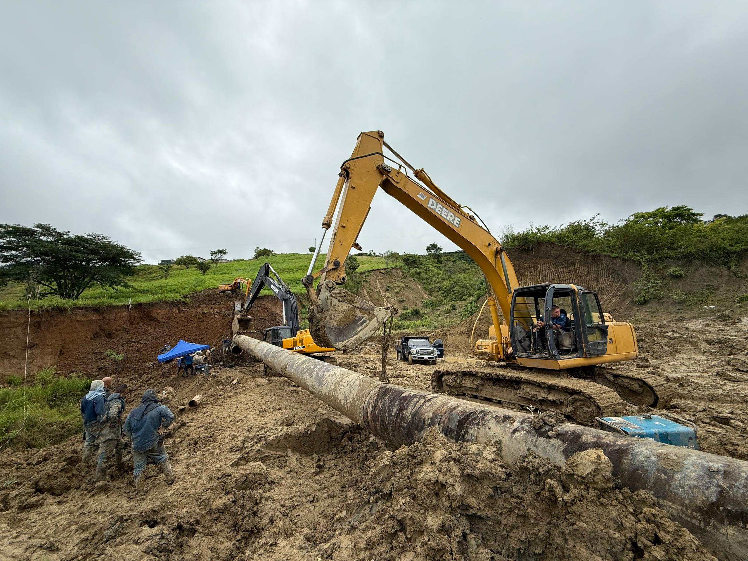 Los trabajos requirieron del uso de maquinaria pesada para despejar el área, antes de proceder con el despliegue del personal y con el reemplazo de la tubería.