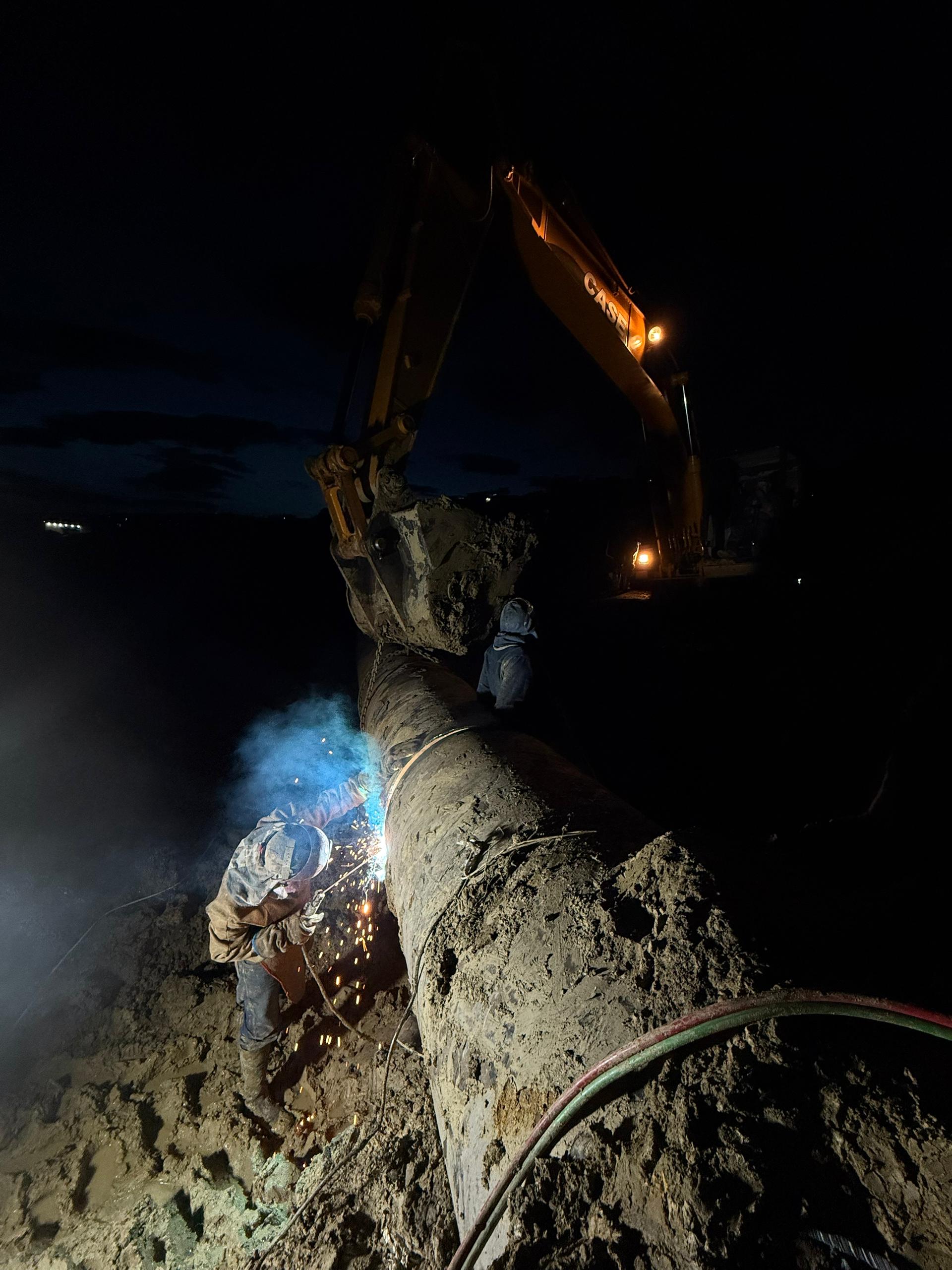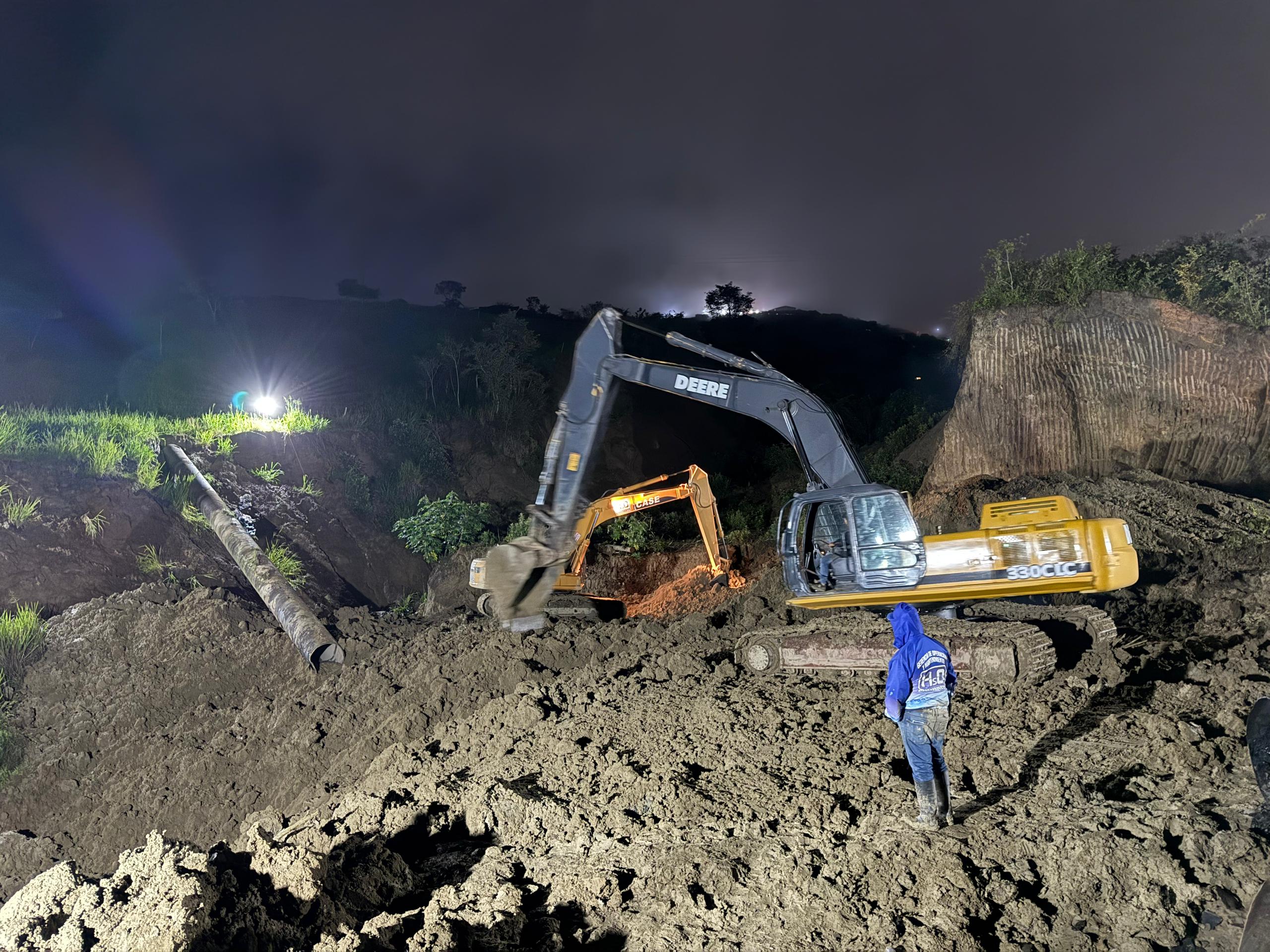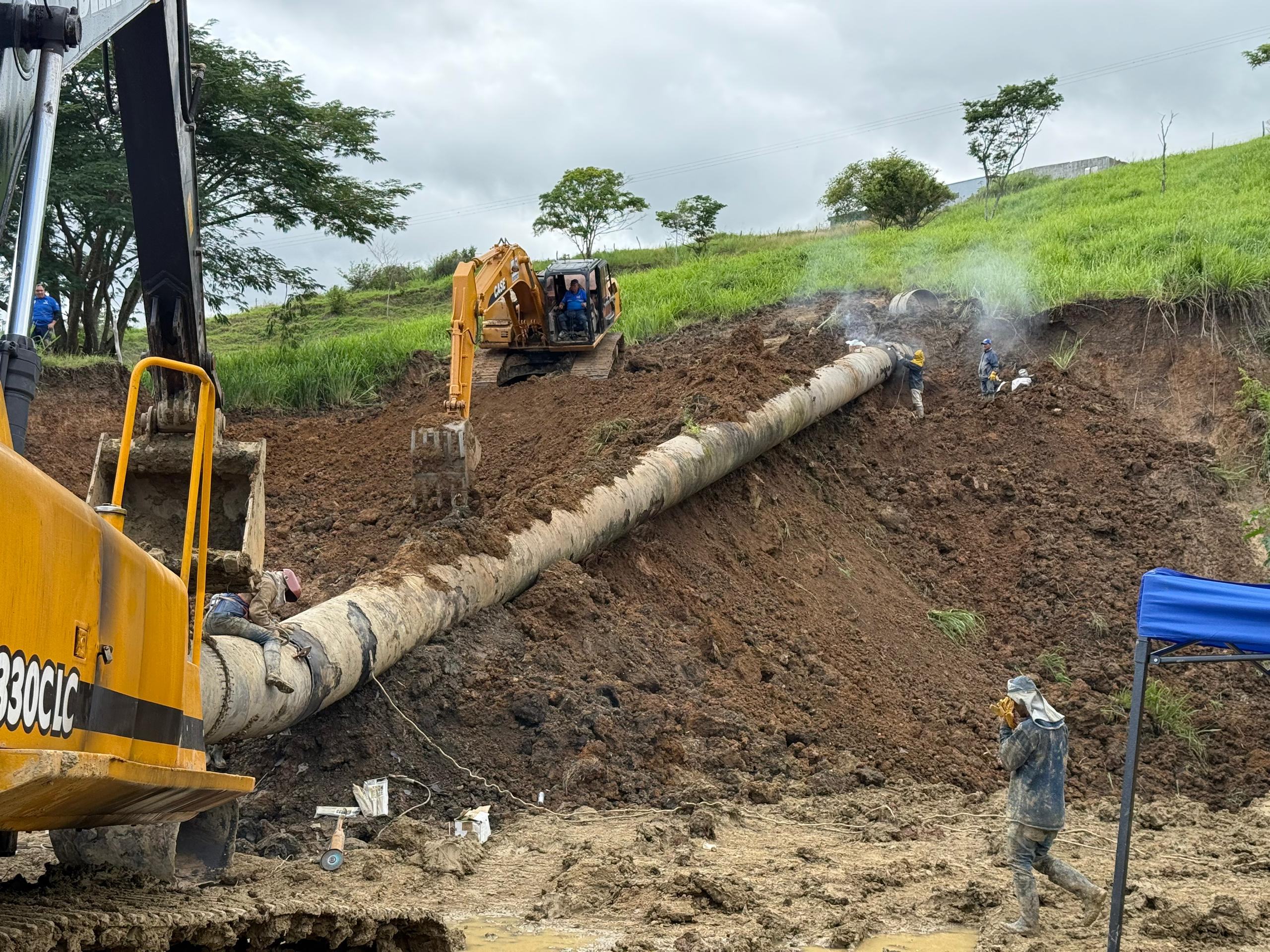 Los trabajos requirieron del uso de maquinaria pesada para despejar el área, antes de proceder con el despliegue del personal y con el reemplazo de la tubería.