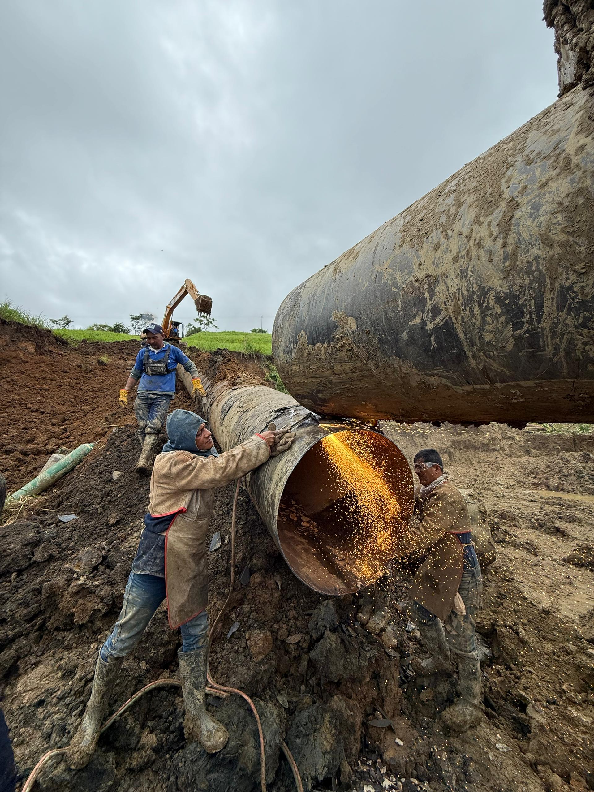 Simultáneamente, personal especializado, reparó un tramo de una tubería de 40 pulgadas de diámetro de acero al carbono perteneciente al alimentador Torbes. Esta reparación se ejecutó en el sector Las Minas de Arena, municipio Córdoba, lo que permitió recuperar 55 litros por segundo de caudal de agua. Dicha optimización mejora el servicio para unas 8.500 familias adicionales.