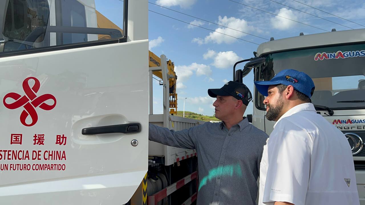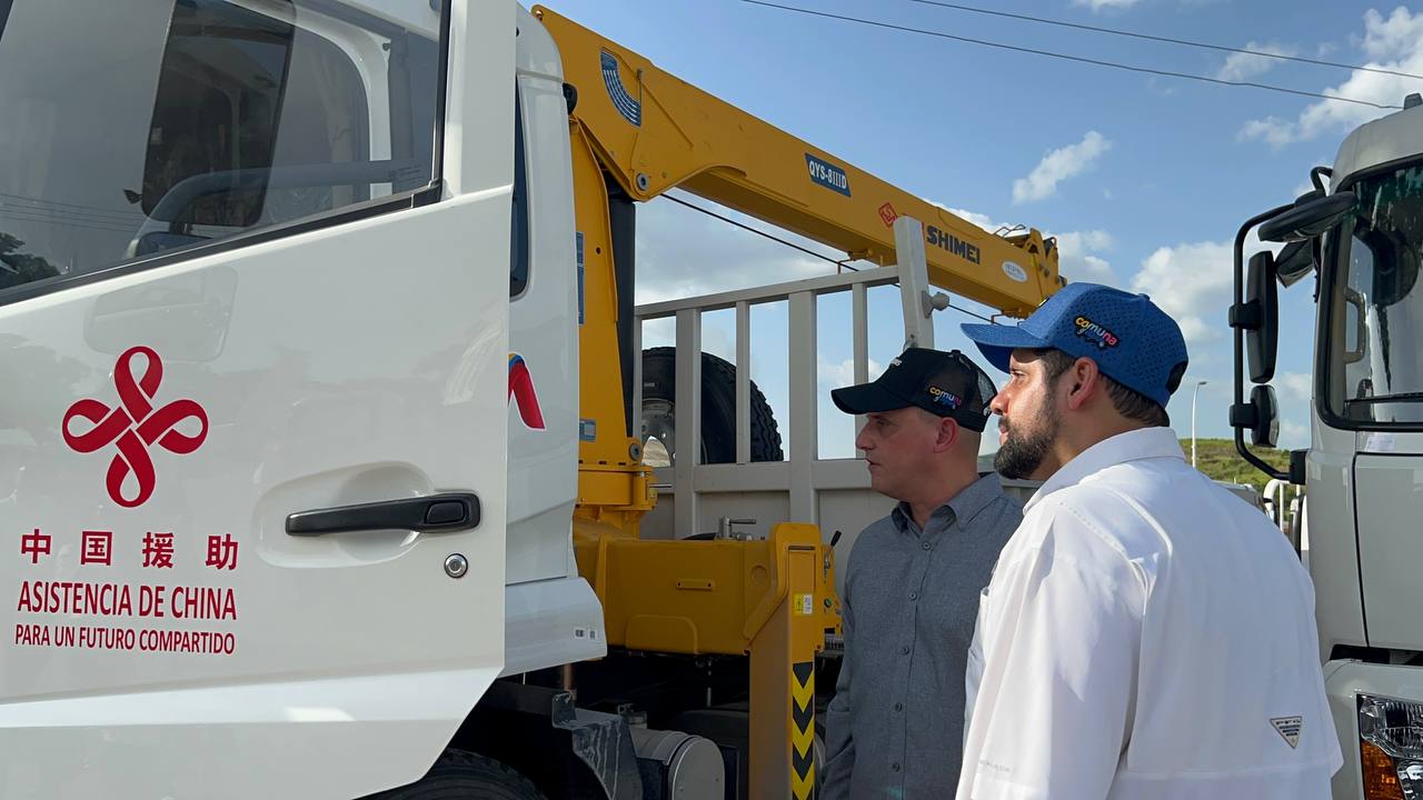 Gracias a la relación de hermandad con la República Popular China, arribó este lote de camiones y maquinaria pesada