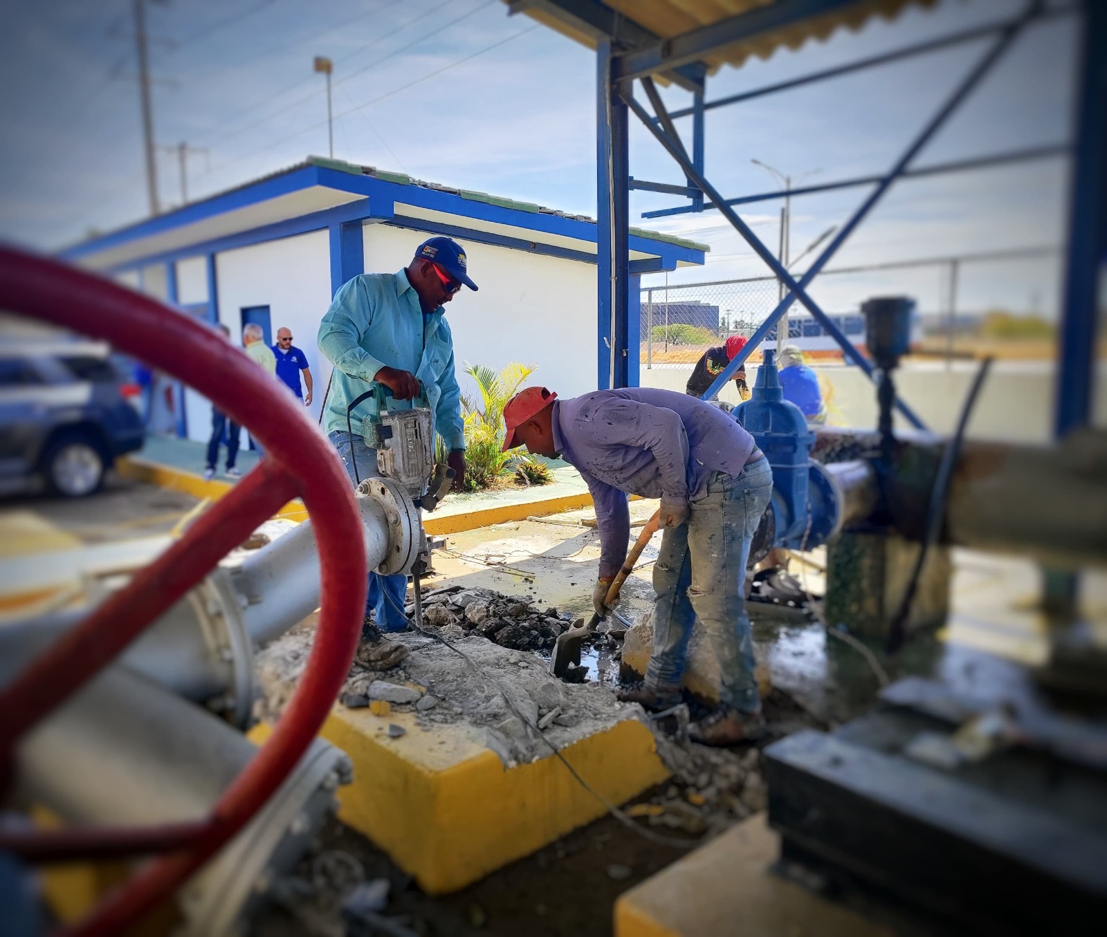 El inicio de los trabajos consistió en el acondicionamiento del área, la demolición y construcción de la base, donde se instalará un equipo de bombeo de 150 Hp que aportará 80 litros por segundo a este sistema, consolidando los cuatro grupos de bombeo necesarios en dicha estación.