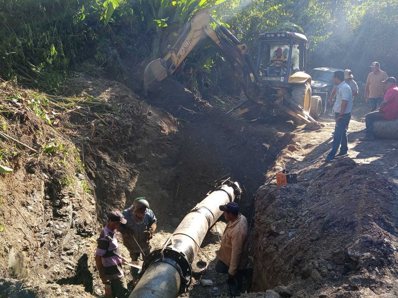 El personal de operaciones y mantenimiento se trasladó al sector Los Baccos con el propósito de reparar la avería en la aducción de PEAD, así como también, instalar una junta de 20 pulgadas y un niple de 3.50 metros para recuperar 50 litros por segundos y así mejorar significativamente las condiciones operativas del sistema de distribución en la localidad nirgueña.