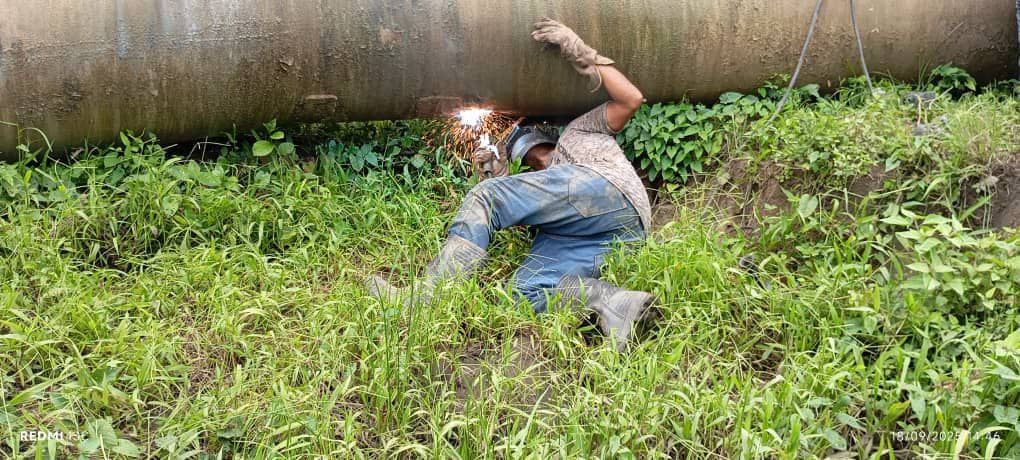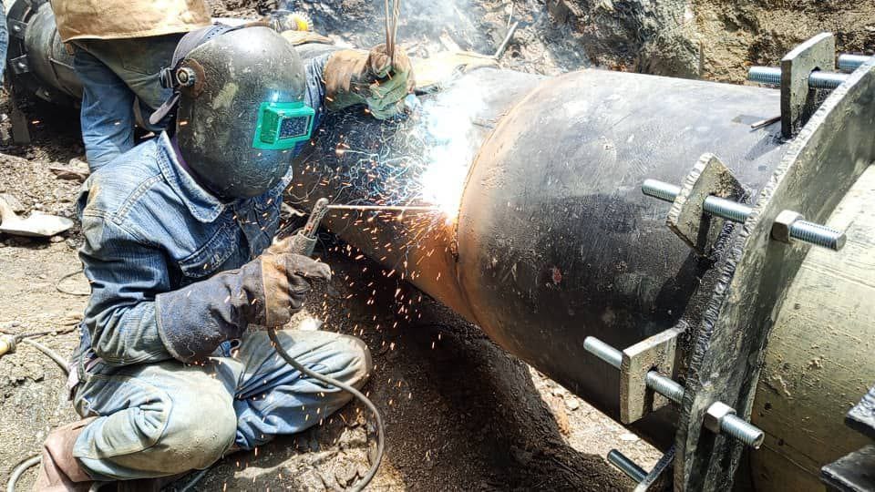 Los trabajos consistieron en la sustitución de planchas de acero y soldaduras en varios tramos de aducción, reparación de toma domiciliaria, válvulas de sectorización, así como también, mantenimiento preventivo a estaciones de bombeos, recuperando un caudal de 125 litros por segundo.