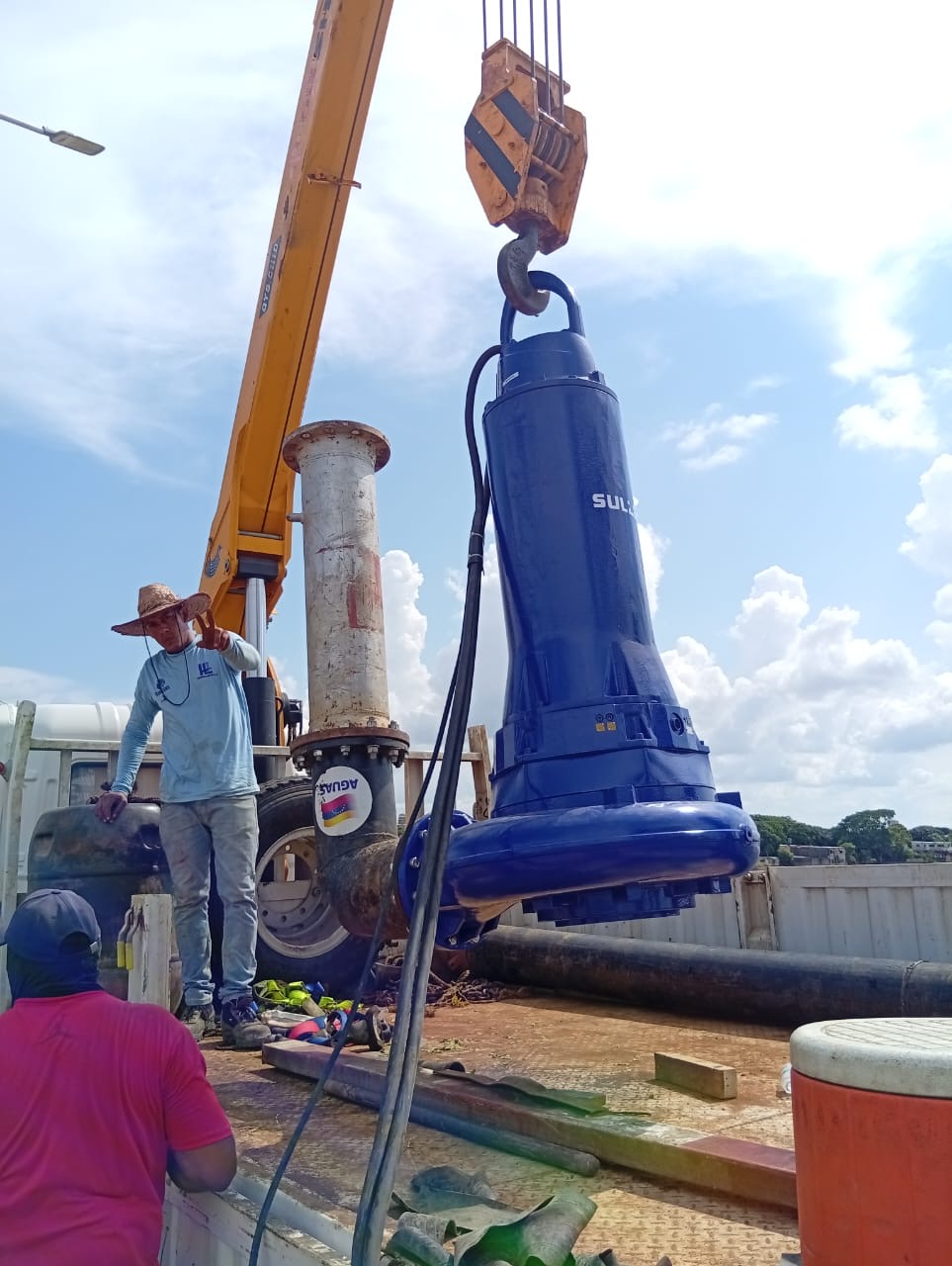 (Ministerio de las Aguas 11-10-2025).–Con la finalidad de optimizar la operatividad en la captación del puente María Nieves sobre el río Apure, el Pueblo Trabajador del Agua, logró con éxito la instalación de 2 equipos sumergibles de 90 hp cada uno, los cuales aportan un caudal de 260 litros de agua por segundo que van directo a la planta potabilizadora La Defensa, que abastece al municipio San Fernando.