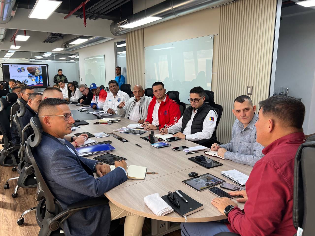 (Ministerio de las Aguas 17-10-2025).- Con el objetivo de revisar los logros y las metas a cumplir este año en materia de agua potable y saneamiento, el vicepresidente sectorial de Obras Públicas y Servicios M/G Jorge Márquez, junto al ministro del Poder Popular de las Aguas, Ing. Carlos Mast, lideró una jornada de trabajo con los presidentes y presidentas de las hidrológicas del país.