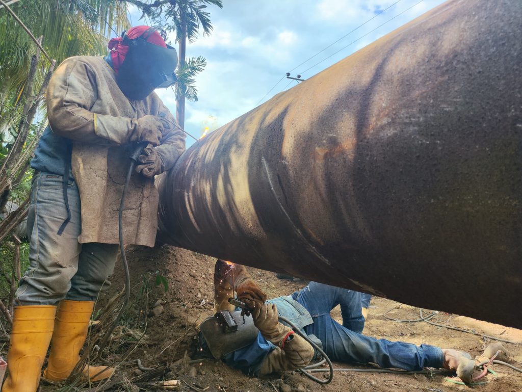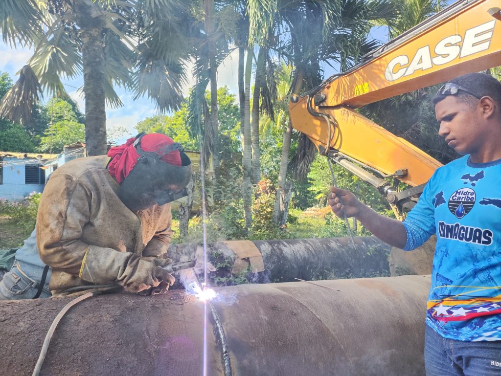 La Fuerza Trabajadora del Agua se desplegó en el sector El 4 de Santa Clara, perteneciente a la parroquia Clarines del municipio Manuel Ezequiel Bruzual. En este punto, se ejecutaron labores técnicas de soldadura y acoplamiento de tuberías para agua potable de 26 pulgadas de diámetro, correspondientes a la línea de distribución de Píritu.