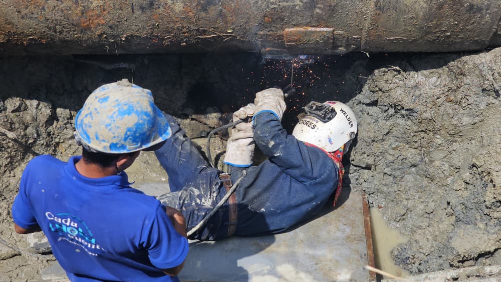 Las maniobras técnicas contaron con el despliegue de tres equipos especializados de ingenieros, técnicos y soldadores, quienes abordaron averías en tuberías de gran envergadura con diámetros de 20, 28, 36 y 42 pulgadas.