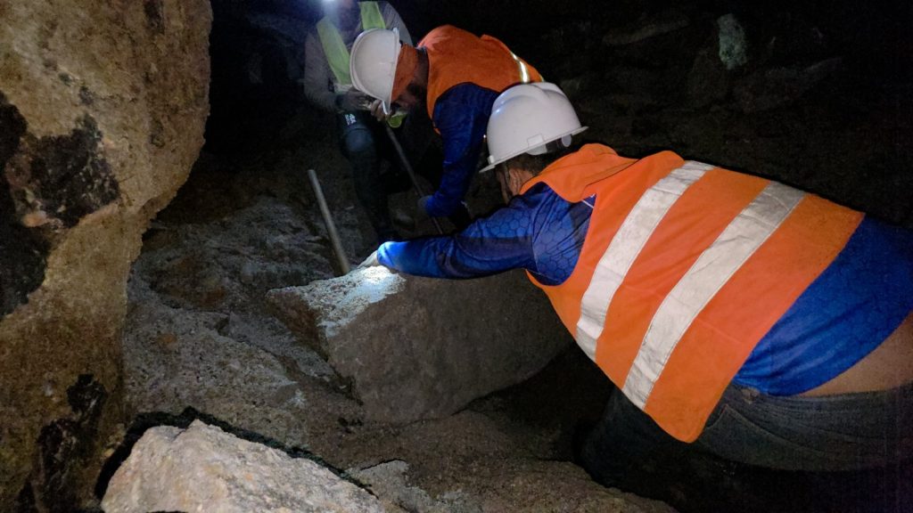 Para garantizar la seguridad y la operatividad en este frente de trabajo de alta complejidad, se han implementado acciones estratégicas que incluyen sistemas de ventilación constante para asegurar el oxígeno en zonas confinadas, así como la creación de canaletas de drenaje para evacuar aguas estancadas. La combinación de demolición manual y mecánica ha permitido, hasta la fecha, retirar más de 1.000 metros cúbicos de material. Esta planificación estricta arroja resultados tangibles, permitiendo que la maquinaria avance en la excavación de la roca de forma precisa y segura.