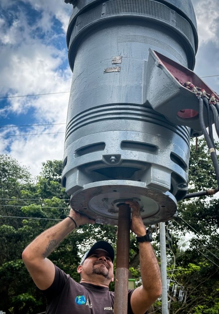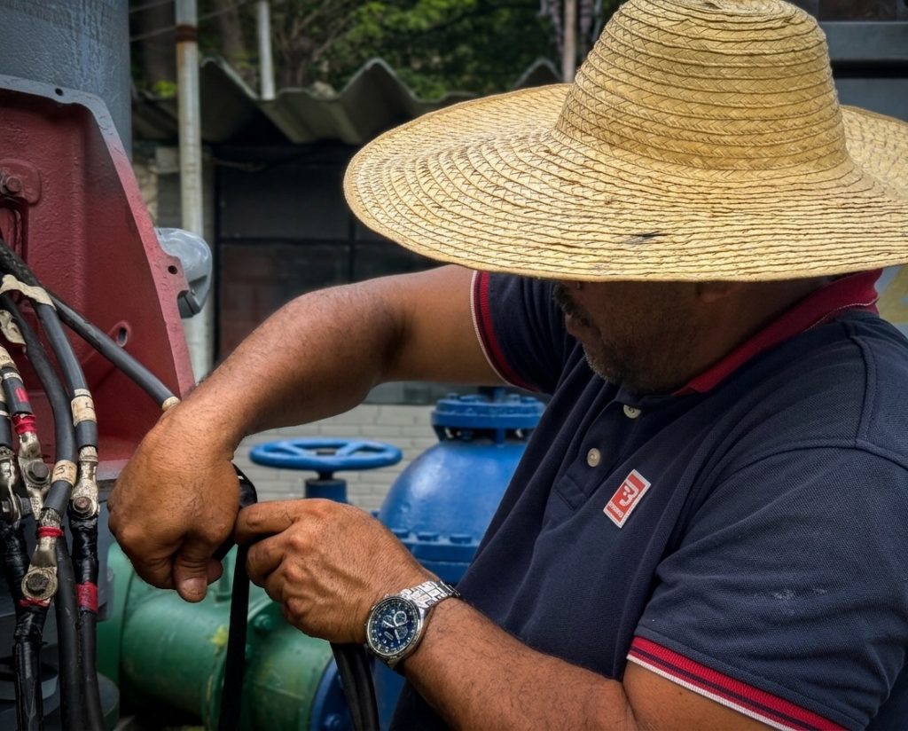 La jornada técnica consistió en la instalación y puesta en marcha de un potente motor vertical de 450 HP. Esta pieza fundamental de ingeniería permite estabilizar la presión en el proceso de distribución, asegurando que el caudal necesario llegue a cada una de las comunidades.
