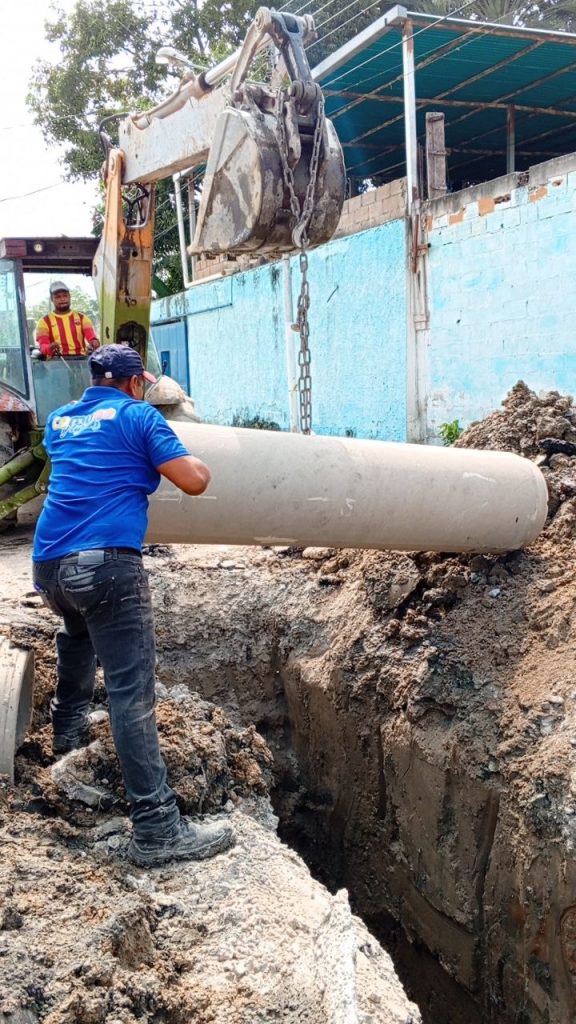 En ese lugar, el Equipo Multidisciplinario del Agua optimizó el servicio de saneamiento con la colocación de tubería para aguas servidas de 16 pulgadas de diámetro, con el propósito de atender a mil 500 familias de la comuna «Miranda, Bolívar, Chávez», gracias a la participación protagónica del Poder Popular a través de la elección del proyecto prioritario postulado para la Consulta Popular Nacional.
