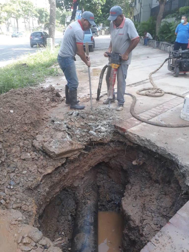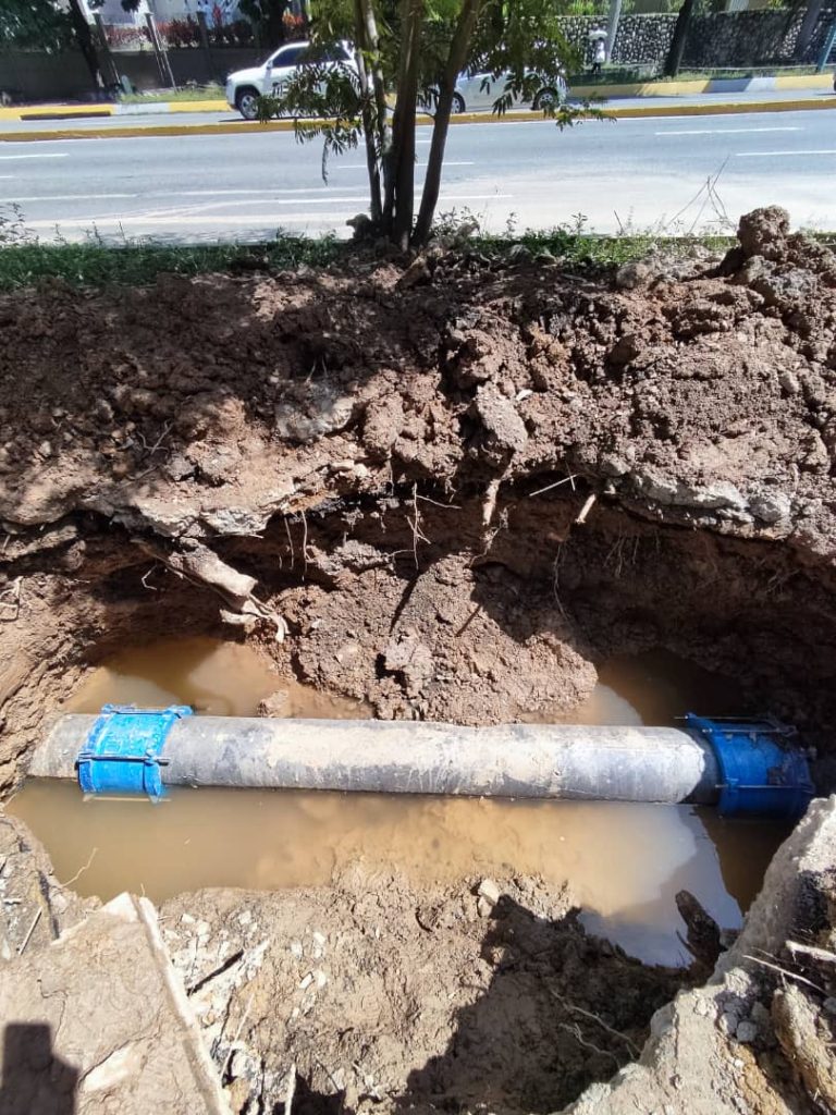 La avería fue reportada por vecinos del edificio Araira y fue atendida de manera inmediata por el personal del Acueducto Metropolitano, quienes procedieron a rotular y excavar un tramo aproximado de 3 metros de longitud, donde localizaron una rotura en el tubo matriz que suministra el vital líquido al lado sur de la avenida principal de El Cafetal.