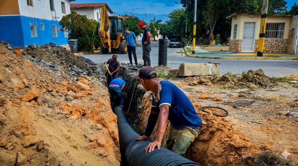 (Prensa Ministerio de las Aguas – 28-04-2026).- El Equipo Multidisciplinario del Agua, cumpliendo con las directrices del Gobierno Bolivariano, ejecutó la construcción de 32 metros de colector en el sector F de la urbanización Base Aérea El Libertador (BAEL), ubicada en la parroquia San Martín de Porres, municipio Libertador del estado Aragua, con el propósito de mejorar el servicio de saneamiento a 300 familias de la zona.