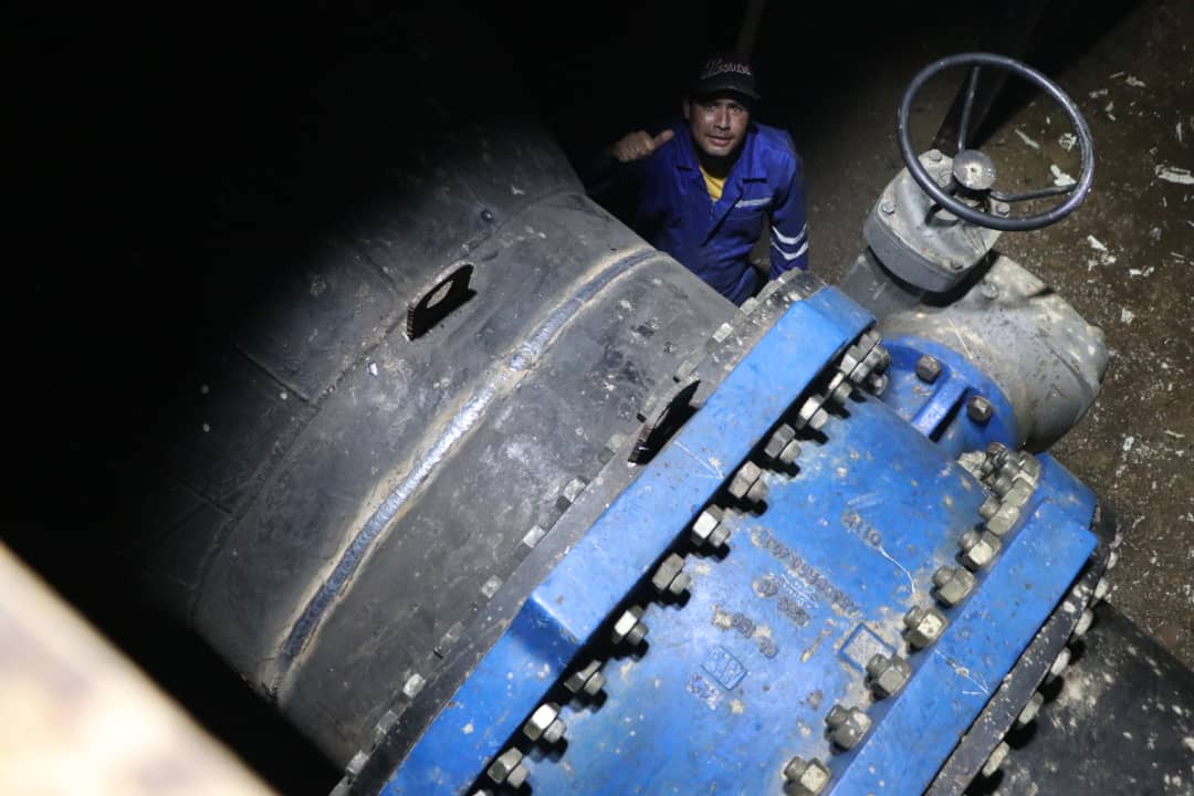 (Prensa MinAguas/Hidrocapital 08-11-2021).- La clase trabajadora de Hidrocapital reparó en tiempo récord una válvula de 48″ ubicada en la tubería de 60″ de la aducción principal del Sistema Tuy III, la cual se averió en la noche del pasado sábado 6 de noviembre.