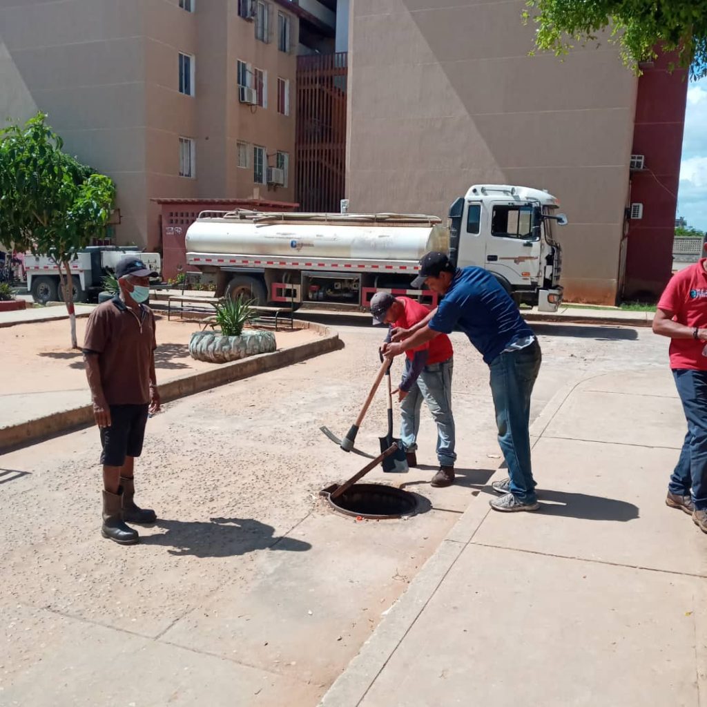 Un total de 200 metros lineales de colector de 8″ y 4 bocas de visita fueron saneadas en la Urbanización Villa Sur y Complejo Habitacional Rafael Urdaneta
