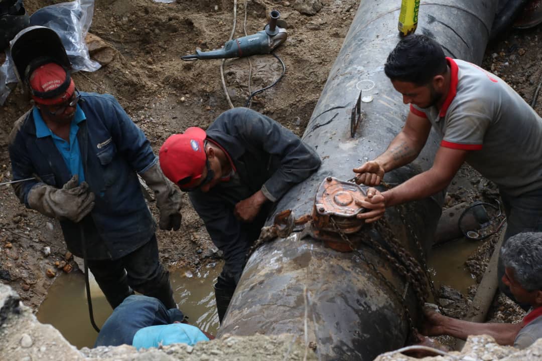 El Pueblo Trabajador del Agua realizó trabajos de roturación de 6 metros lineales de pavimento, exploración, maquinaria pesada, soldadura y extracción de la tubería dañada, sustituyendo un tramo de tubería de acero de 25 metros de 24″ pulgadas.