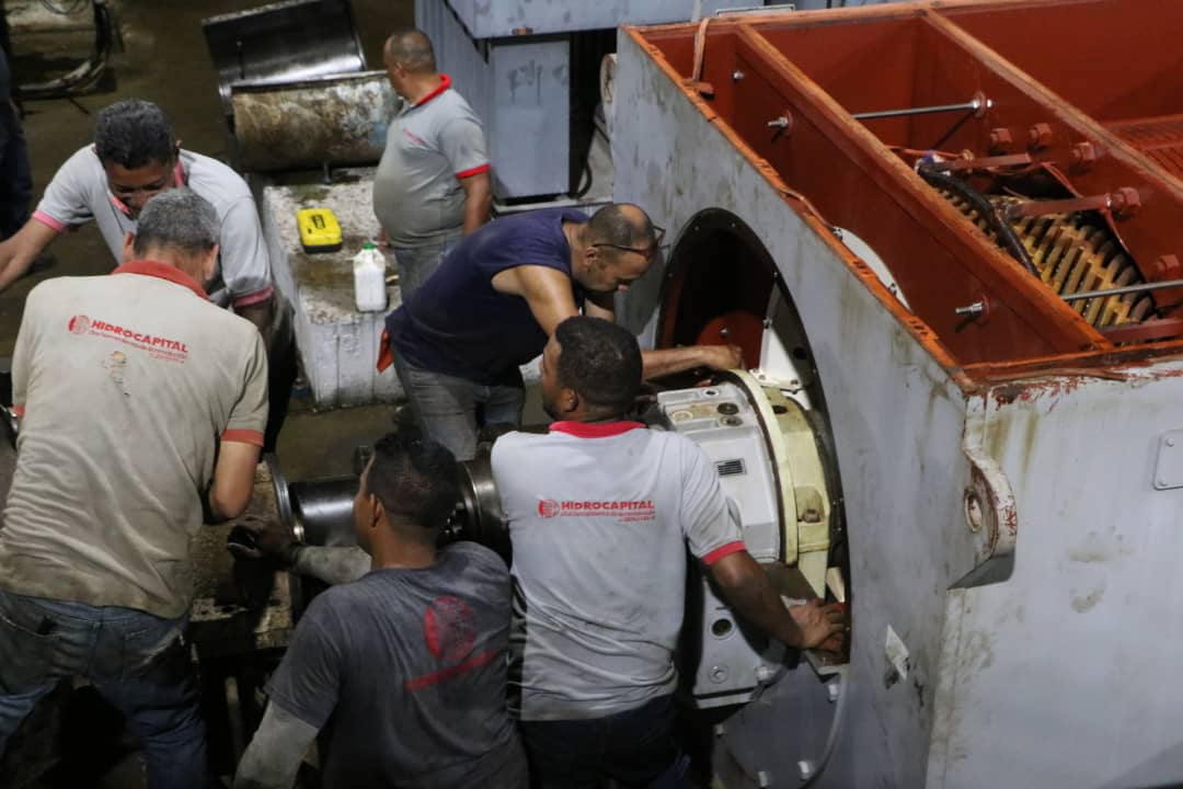Con más de 24 horas de trabajo continuo, el equipo de Hidrocapital ejecutó labores correctivas y preventivas, a través de la sustitución de un motor de 15 megavatios del grupo 5 de dicha estación de bombeo, que distribuye 8.800 litros de agua por segundo al Distrito Capital.