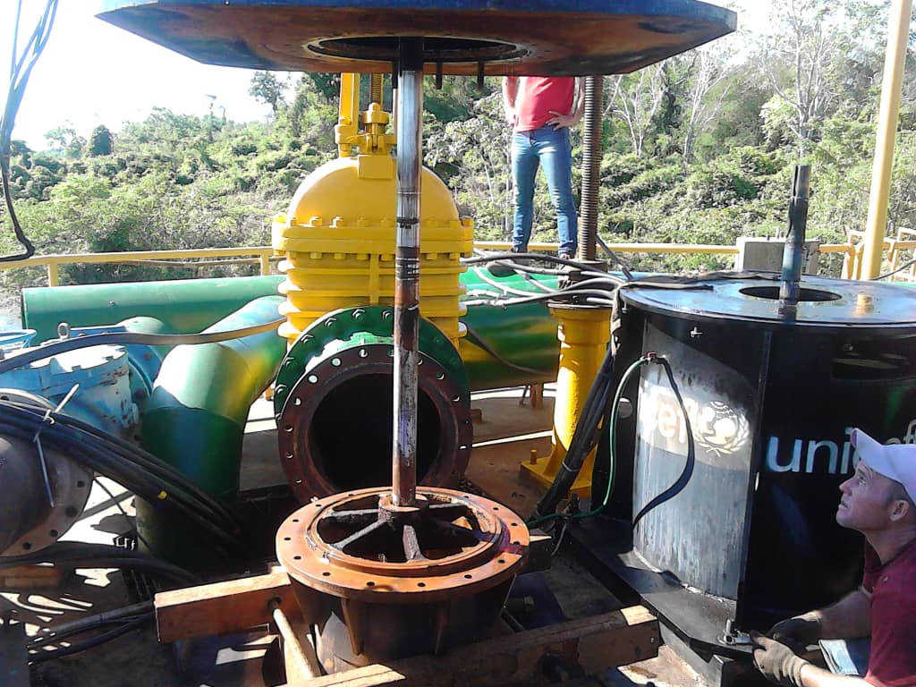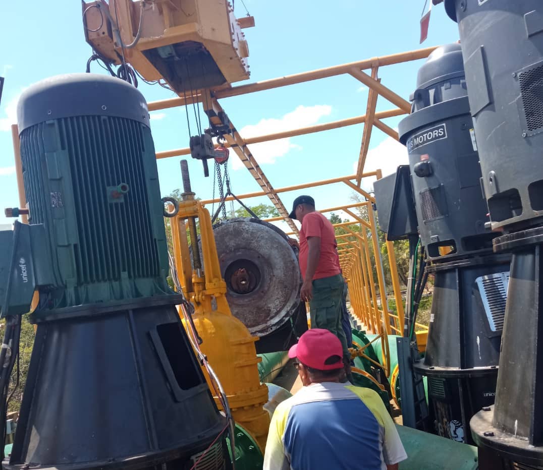 (Prensa MinAguas/Hidrolago 08-03-2022).- Cumpliendo los lineamientos del presidente de la República, Nicolás Maduro; del vicepresidente sectorial de Obras Públicas y Servicios, G/J Néstor Reverol, y del ministro del Poder Popular de Atención de las Aguas, G/D Rodolfo Marco Torres, el Pueblo Trabajador de Hidrolago realiza mantenimiento preventivo y correctivo de las 4 bombas verticales de 700 litros de agua por segundo en la torre toma del embalse Burro Negro, para beneficio de más de 700 mil habitantes de los municipios Simón Bolívar, Santa Rita, Cabimas y Lagunillas de la Costa Oriental del Lago (COL).