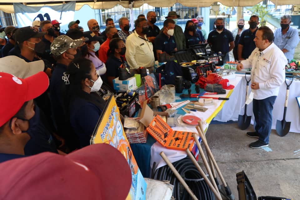 Durante el despliegue, Marco Torres hizo entrega de herramientas y equipos a las Brigadas del Poder Popular de las Aguas (Brippas) para la corrección de averías menores en las comunidades de los 13 municipios monaguenses.