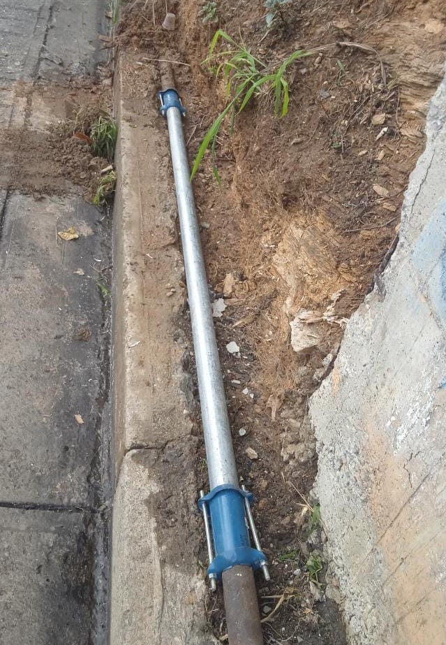 Asimismo, en la calle principal del Mirador del Este, la fuerza trabajadora del agua ejecutó maniobras de exploración, determinado una avería en tubería de 2″, donde se efectuó el reemplazó de un niple de 2″ de 2.50 metros, cerrando con dos juntas mecánicas.