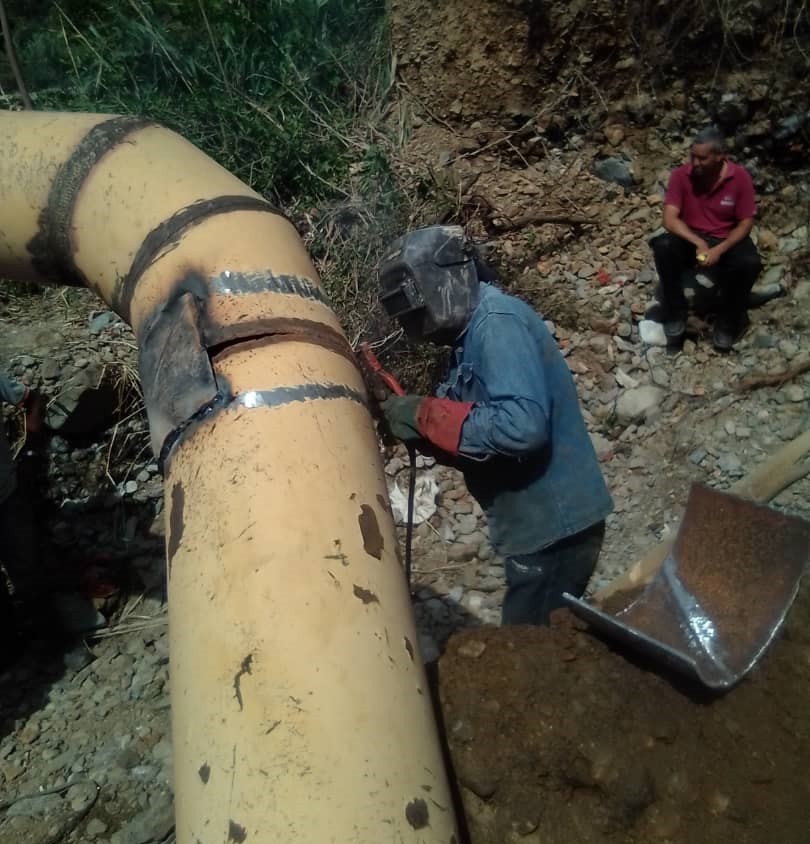 Los trabajadores de la hidrológica procedieron a soldar una faja de 25 centímetros de ancho alrededor de toda la tubería, para corregir la avería y eliminar, de esta manera, la fuga de agua potable que afectaba a los sectores Nueva Tacagua, Los Conucos y Nuevo Horizonte.