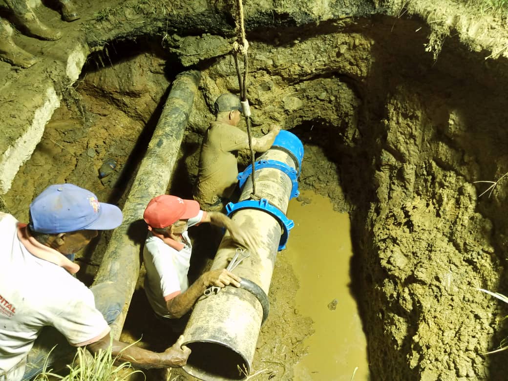 Fuerza laboral de la hidrológica, en articulación con la Alcaldía del municipio Plaza, realizó la sustitución de 2 metros de tubería de 12” para eliminar un tramo averiado e incrementar la producción del acueducto.