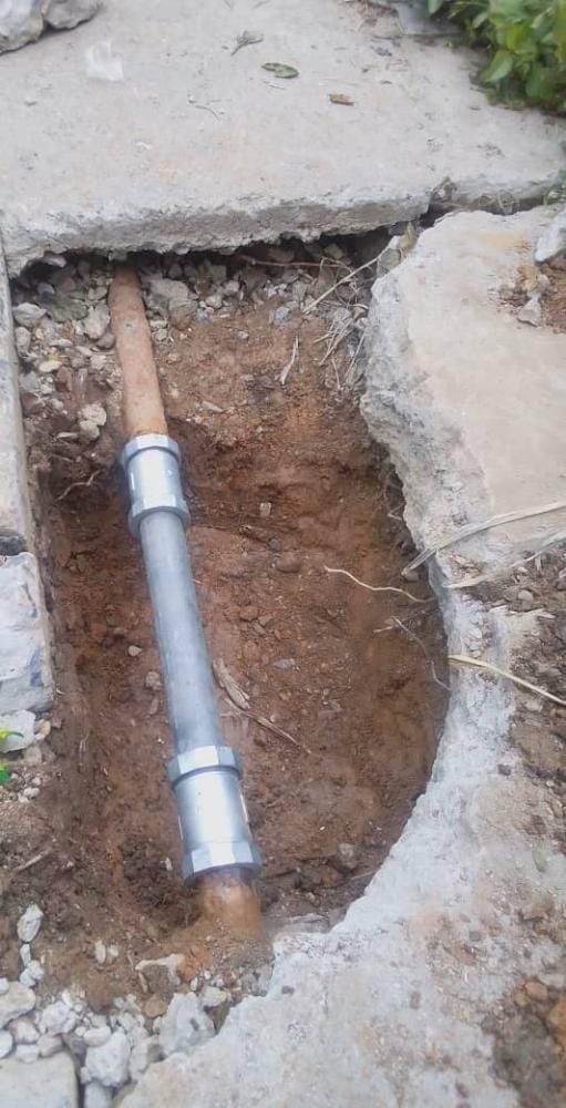 Como parte de los trabajos se realizó excavación y sustitución de 2 metros de tubería con dos juntas mecánicas de 3 pulgadas, logrando así solventar la avería y optimizar el servicio en la comunidad.
