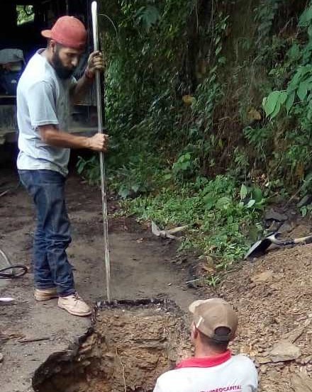 Por lo intrincado del lugar y no poder acceder maquinaria pesada para facilitar las tareas de reparación, la fuerza trabajadora del agua de Hidrocapital realizó las labores de corrección de manera manual. Con barra, pico y pala se realizó la excavación para detectar con exactitud el lugar de la avería.