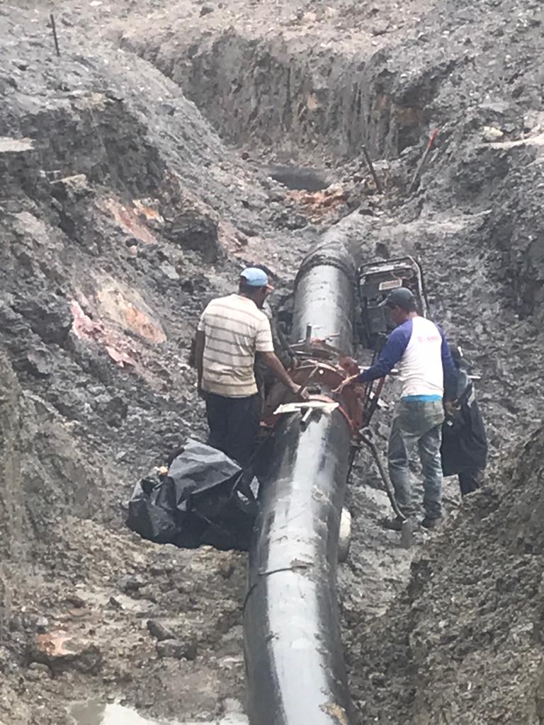 Juan Luis Velásquez, presidente de la hidrológica, anunció que el pueblo trabajador del sector hídrico solventó avería en tubería PEAD de 20 pulgadas, con fabricación de juntas del mismo diámetro, aplicándole soldadura para el sellado.