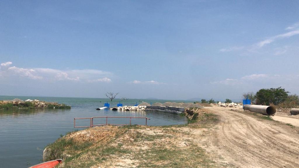 Hasta la fecha, la fuerza trabajadora de MinAguas e Hidrocentro, ha logrado adelantar con éxito la construcción de un muro de protección en la franja derecha del Río Los Guayos, que tiene como función desviar la acumulación de material de arrastre en la zona de captación con el fin de proteger la estación de bombeo ubicada en el lago.