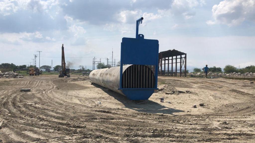 Asimismo, se instaló una tubería de 66 ” con compuerta y rejas para eliminar los componentes sólidos que puedan perjudicar el proceso de captación del agua y se reforzó el terraplén para el soporte de los tubos.