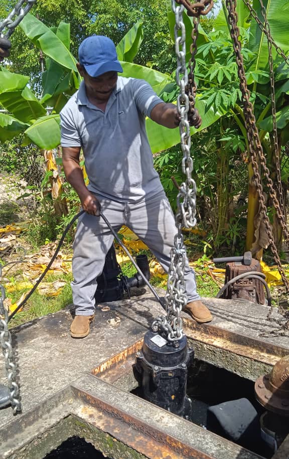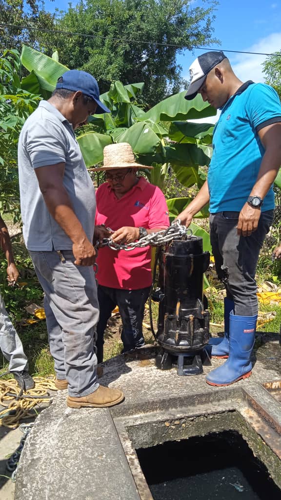 (Prensa MinAguas/Hidrollanos 21-06-2023).- En el marco del 1X10 del Buen Gobierno, la fuerza trabajadora de Hidrollanos realizó la instalación de una bomba de achique de 10 Hp en la estación de bombeo de aguas servidas del Samán, en el sector Aeropuerto, parroquia Mucuritas del municipio Achaguas en el estado Apure.