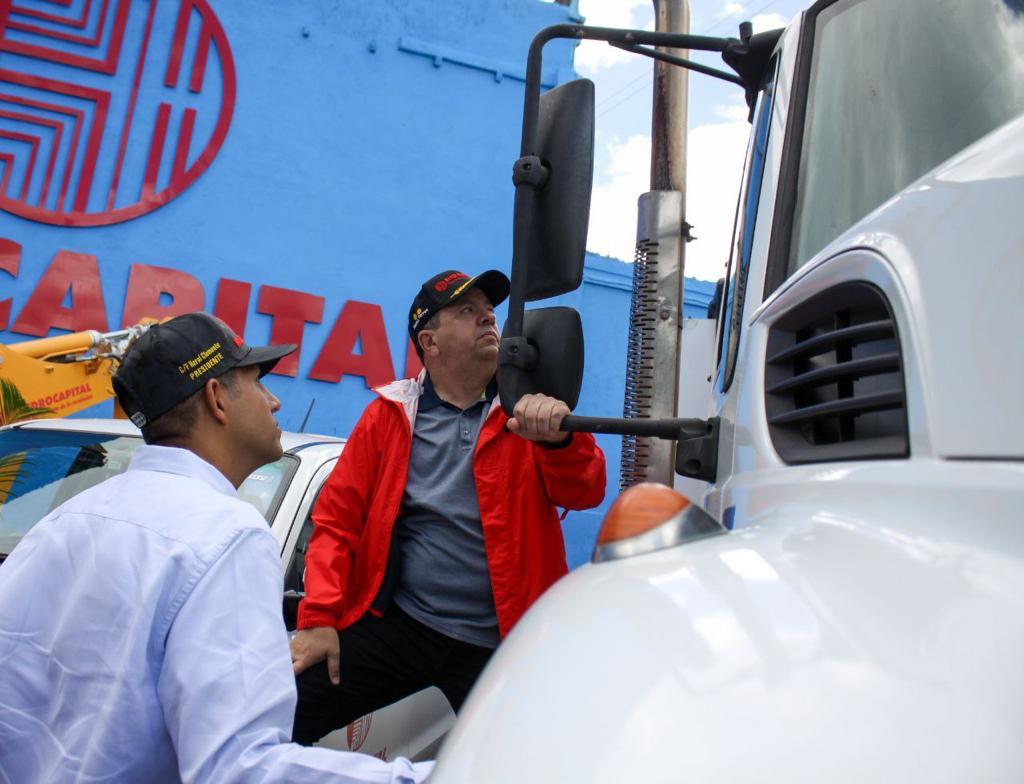 Durante la actividad se hizo entrega de 2 trimotos, 1 camioneta, 1 camión volteo, 1 vactor, 1 retroexcavadora, válvulas, herramientas y uniformes a fin de optimizar la operatividad en Caracas, Miranda y Vargas. «Son vehículos que han sido repotenciados por la misma fuerza trabajadora», afirmó el ministro.