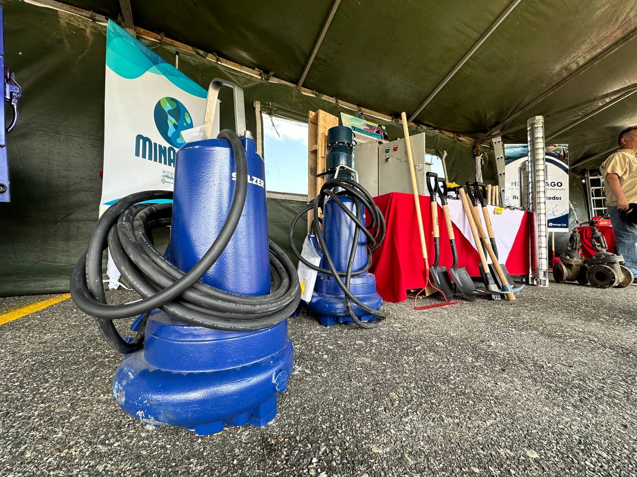 De igual forma, junto al poder popular, hizo entrega de dos equipos sumergibles tipo flygt para la activación de dos estaciones de bombeo de aguas servidas, Bobures en el municipio Sucre y El Encontrado I en el municipio Catatumbo como parte del Plan de Rescate, Conservación y Desarrollo Sostenible del Lago de Maracaibo.