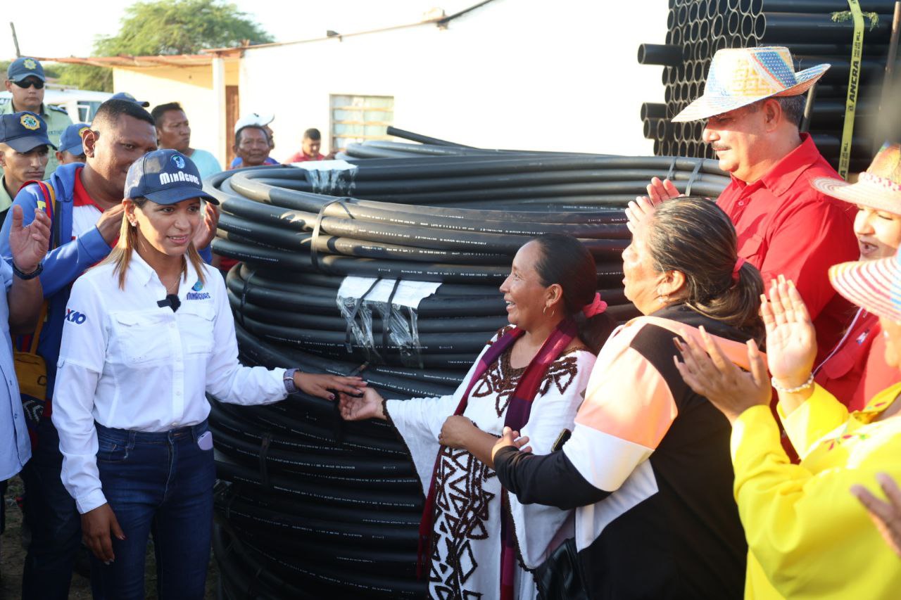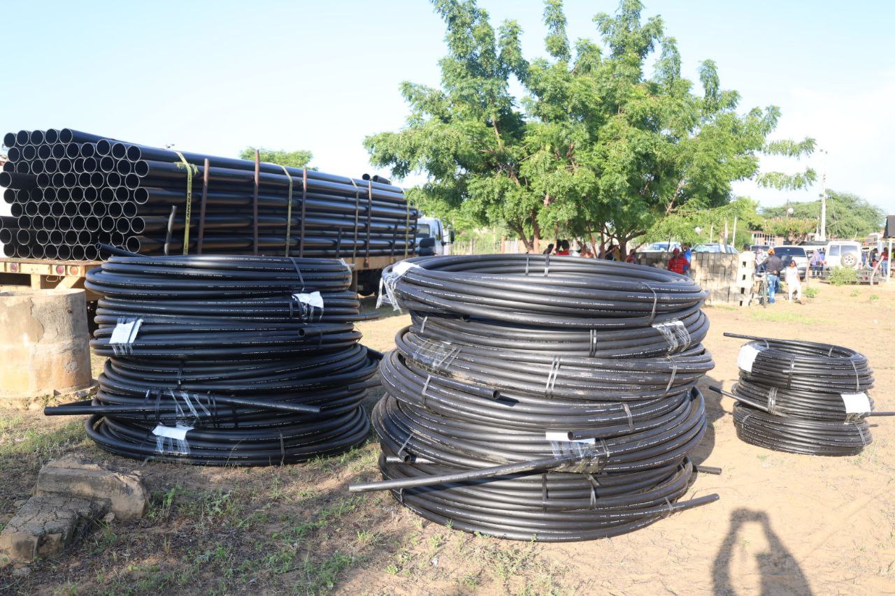 (Prensa MinAguas 12-10-2023).- El ministerio del Poder Popular de Atención de las Aguas continúa desplegado como cada jueves, tal como lo ha instruido el presidente Nicolás Maduro y a propósito de la jornada de trabajo que realiza el equipo de la Vicepresidencia Sectorial de Obras Públicas y Servicios en el estado Zulia. En esta oportunidad se entregaron 2 mil metros de tubería de 10 pulgadas para el inicio de la construcción del acueducto La Sibucara en Santa Cruz de Mara.