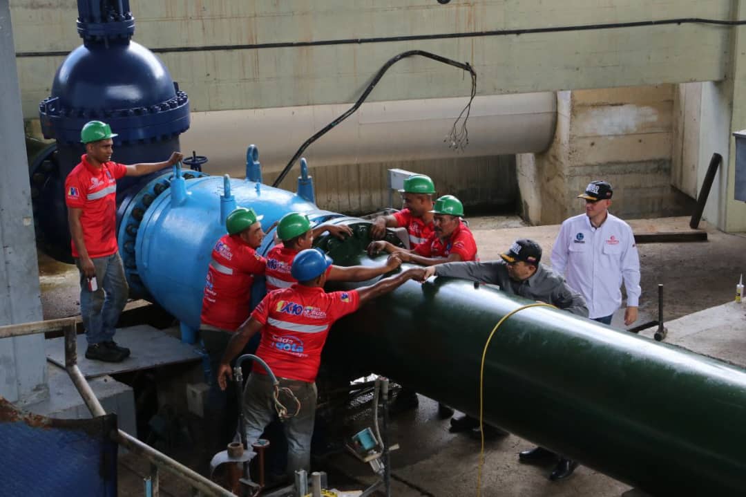 «De la mano de la clase trabajadora de Hidrocapital se realiza un plan integral de repotenciación del sistema, con la sustitución de 3 válvulas de descarga tipo compuerta de 36 pulgadas, las cuales se han rehabilitado totalmente y nos va a permitir dar confiabilidad al sistema.»