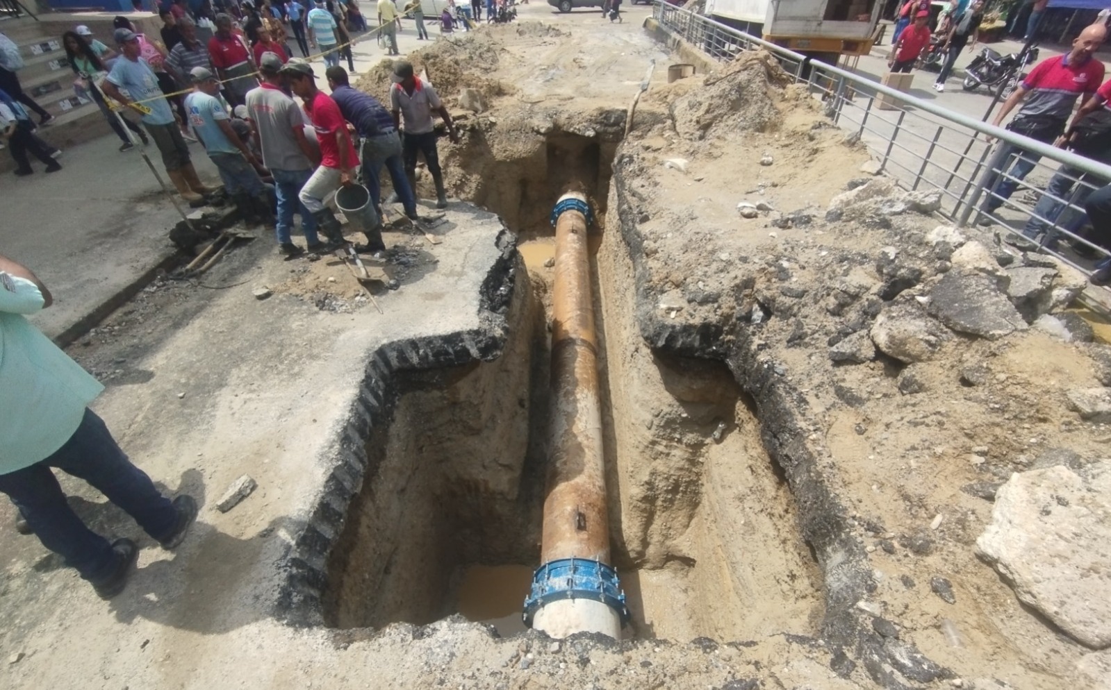 (Prensa MinAguas/Hidrocapital 13-11-2023). – La Fuerza Trabajadora de Hidrocapital, junto con las Brigadas del Poder Popular para el Agua (Brippas) realizaron el reemplazo de ocho metros de tubería de asbesto cemento, por una de acero de 24 pulgadas y dos juntas combinadas, en Guatire, municipio Zamora del estado Miranda.