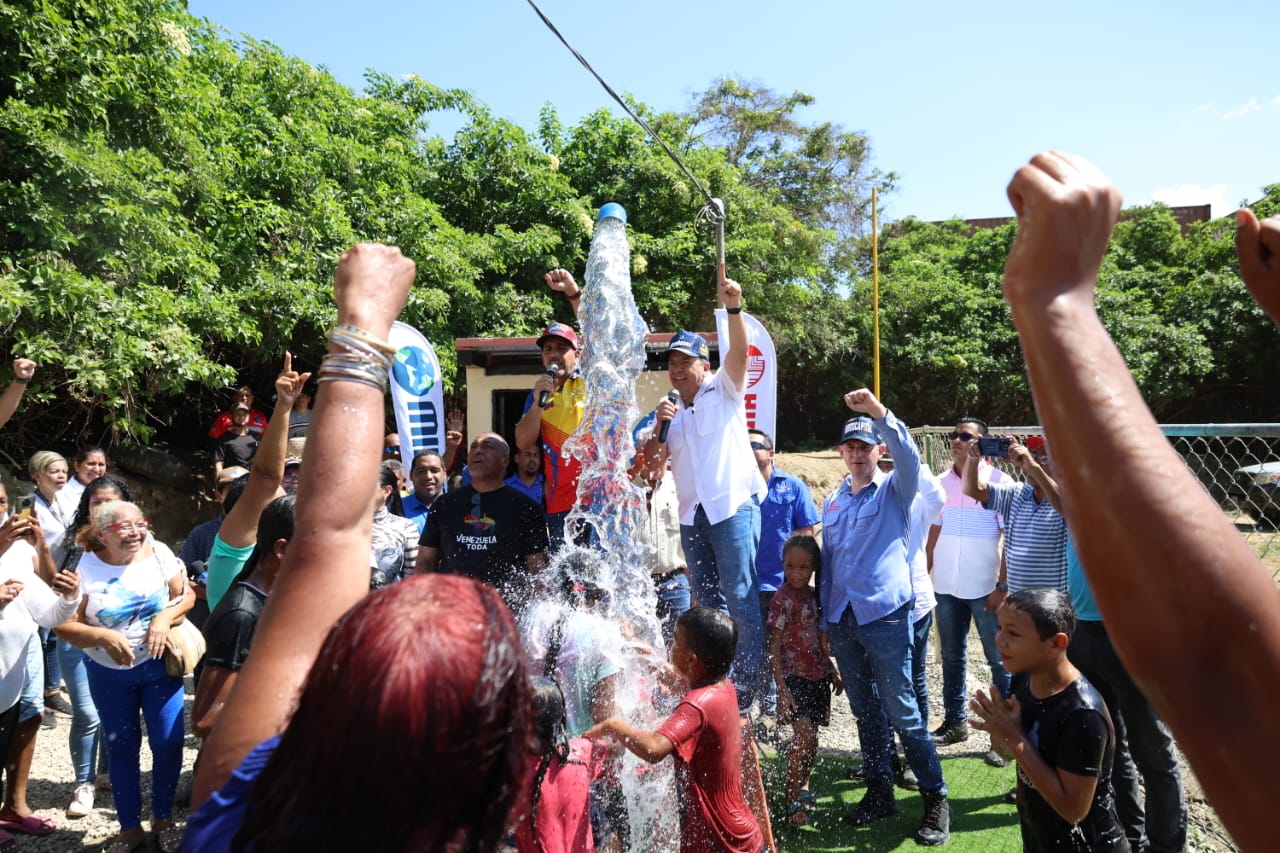 «!Cada gota cuenta, cuidemos el agua! Aquí estamos cumpliendo instrucciones de nuestro presidente Nicolás Maduro, fortaleciendo el 1×10 del Buen Gobierno como parte de esos reportes que hace el pueblo a través de la aplicación VenApp. Estamos hablado que cada pozo produce 10 litros de agua por segundo, son 20 litros por segundo que van a alimentar un tanque de 10 millones de litros y nos va a permitir compensar y distribuir el vital líquido a 19 mil 200 personas», señaló el titular de la cartera de Aguas a propósito de la jornada semanal de MinAguas en el litoral central.