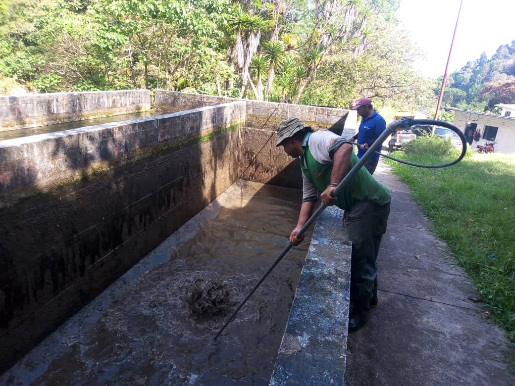 “Para realizar el mantenimiento se hizo uso de compresor neumático y herramientas menores con lo cual se despejo el material arenoso en sedimentadores, recámara, limpieza de rejilla y canalización aguas arriba de la entrada al dique, quedando en óptimo servicio y buen caudal de entrada”, explicó Ferrer.