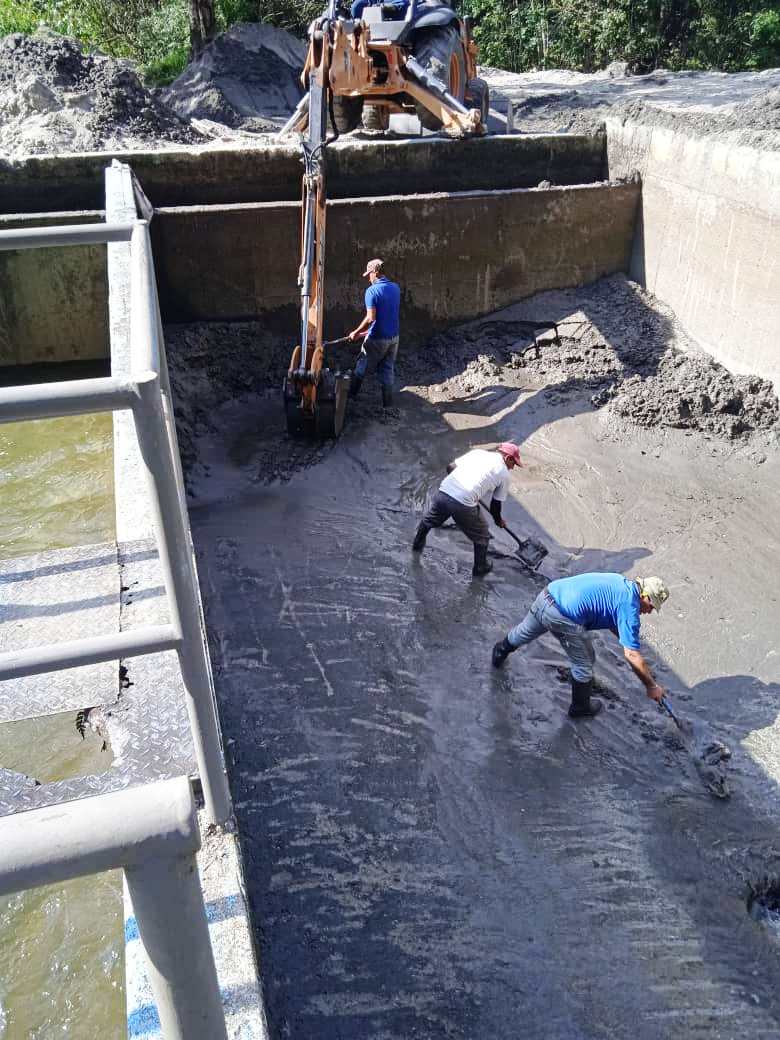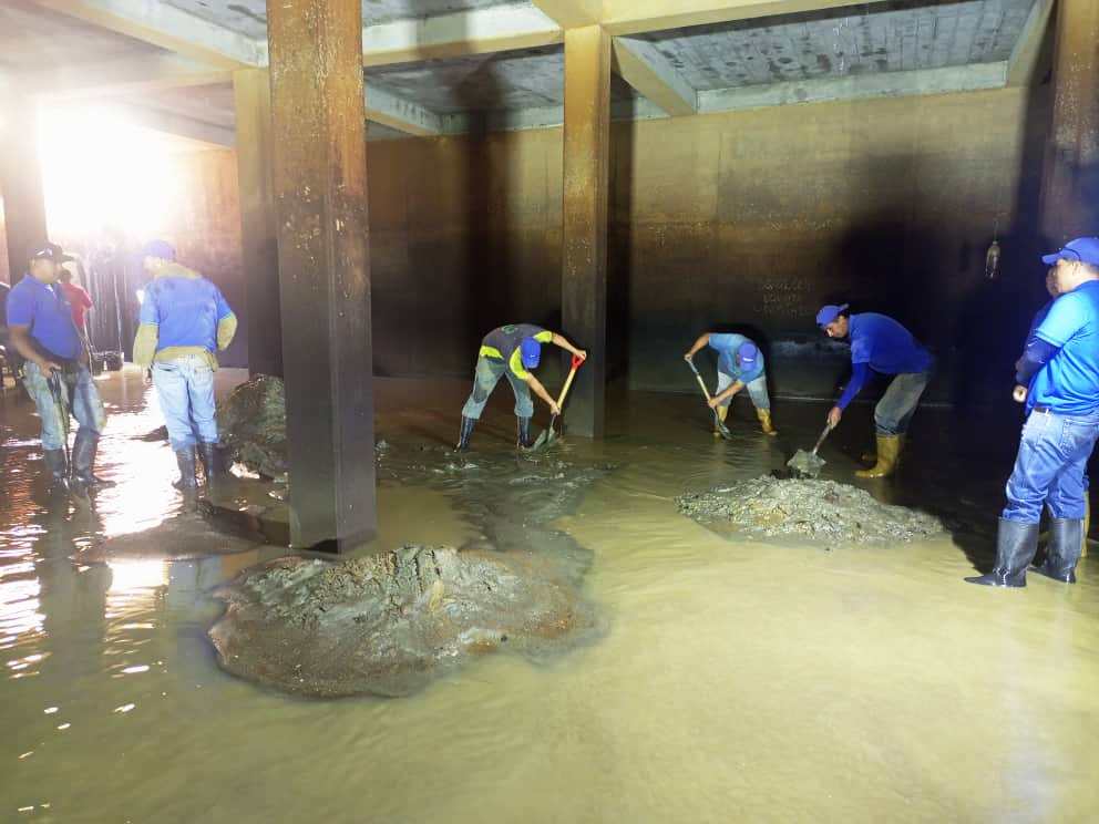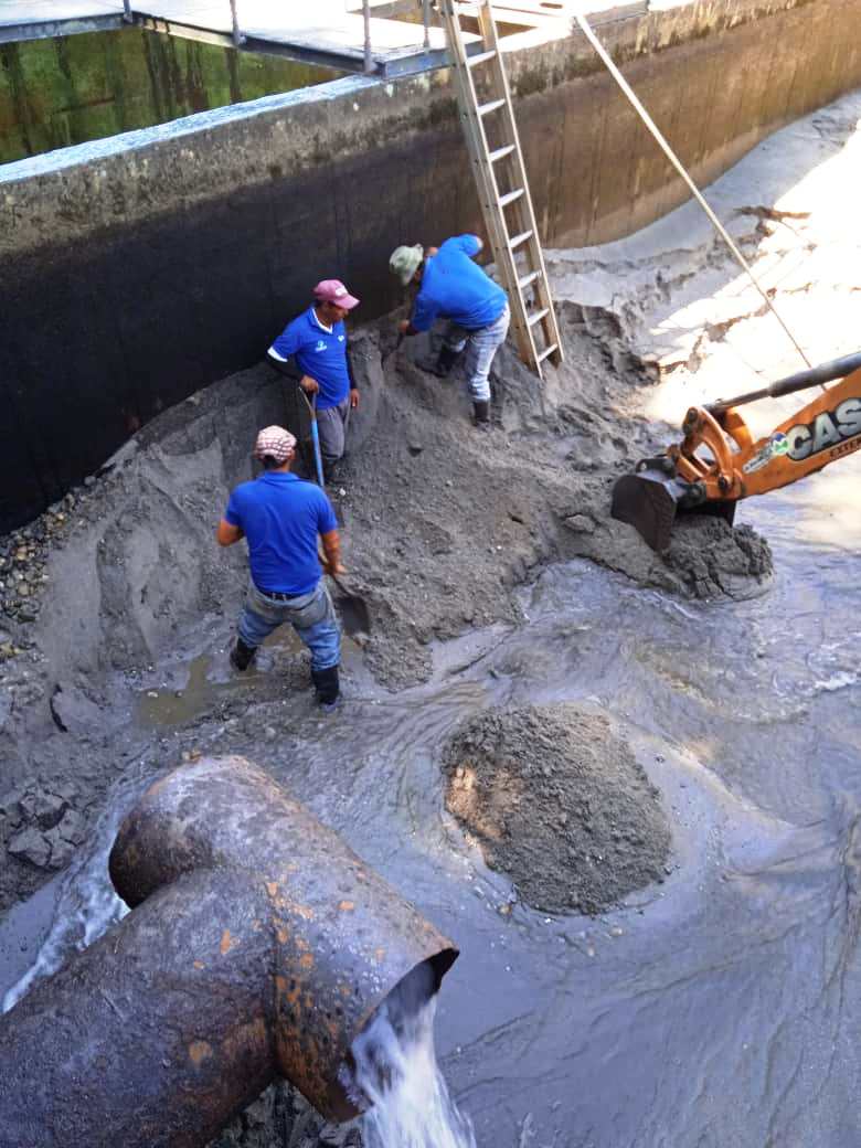 Además, se realizaron las conexiones eléctricas para luminarias a través de reflectores en el tanque subterráneo para permitir a los trabajadores y trabajadoras realizar las actividades de limpieza en dicho tanque, se ejecutaron maniobras para evitar la descompensación de los gatos, la eliminación de sedimento del tanque aéreo, limpieza en la fosa de succión de bombas, filtros y falsos fondos de los mismos.
