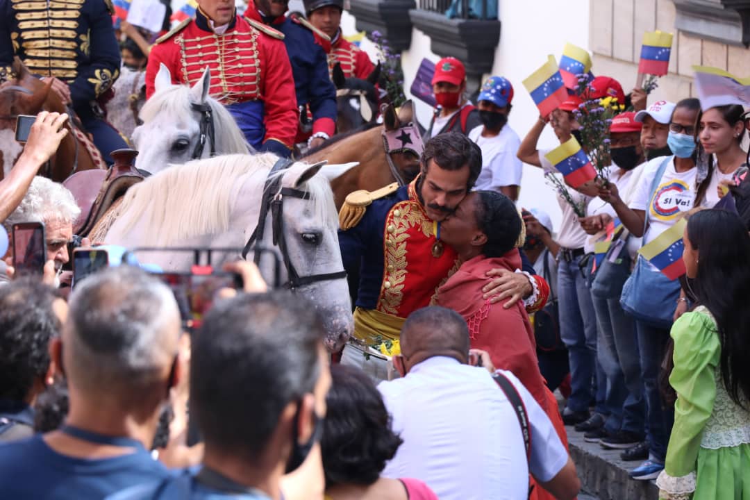 Los alrededores del casco histórico de la capital también se vistieron de gala para recibir al Padre de la Patria. Actores y actrices de la Villa del Cine escenificaron el retorno del Libertador, que pisó el suelo del centro de la ciudad cubierto por una alfombra de flores arrojadas por los visitantes que rememoraban la llegada de los héroes y heroínas desde Carabobo tras luchar por la independencia de la Patria.